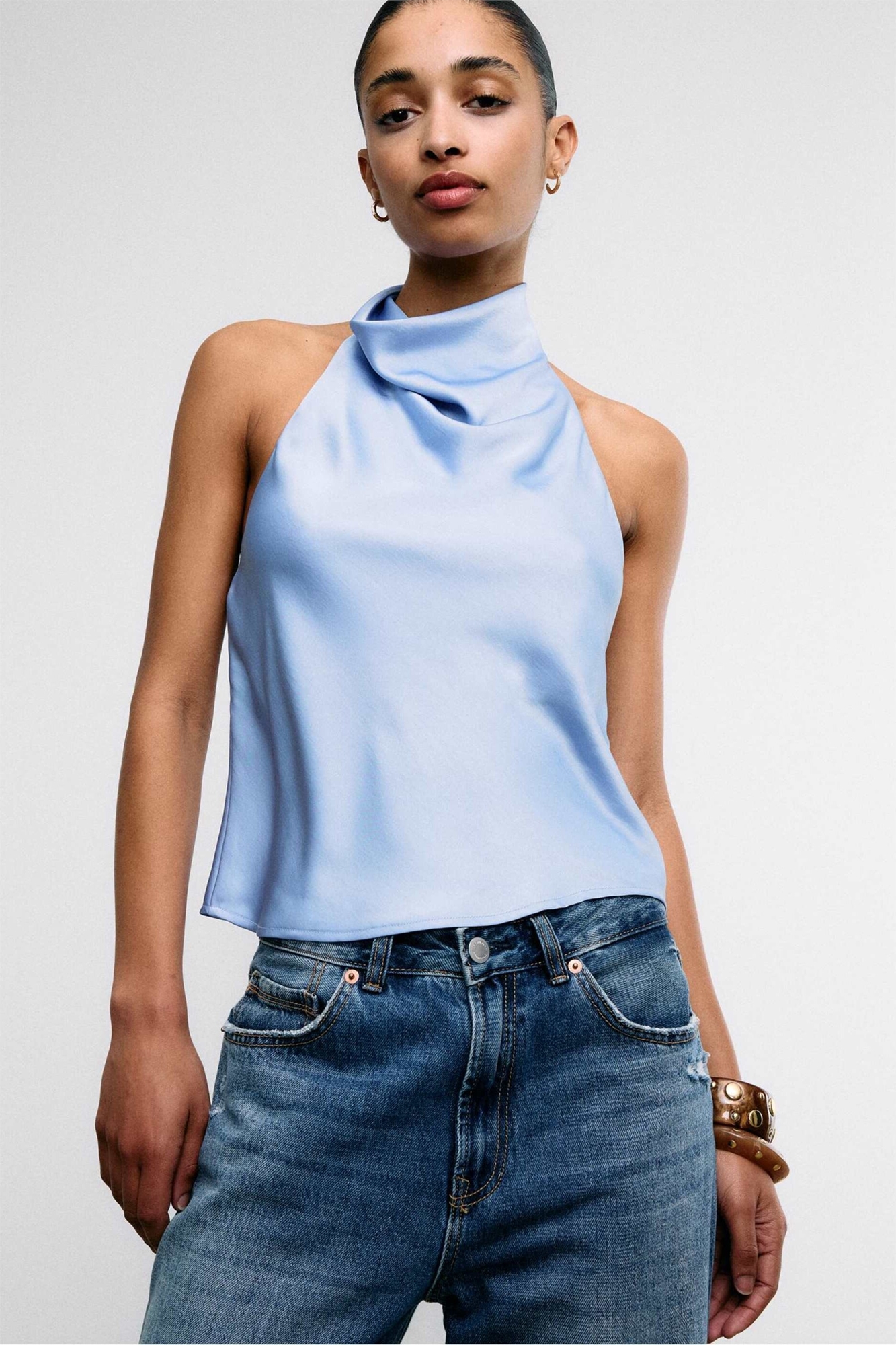 Топ с завязками на шее и сатиновым эффектом
