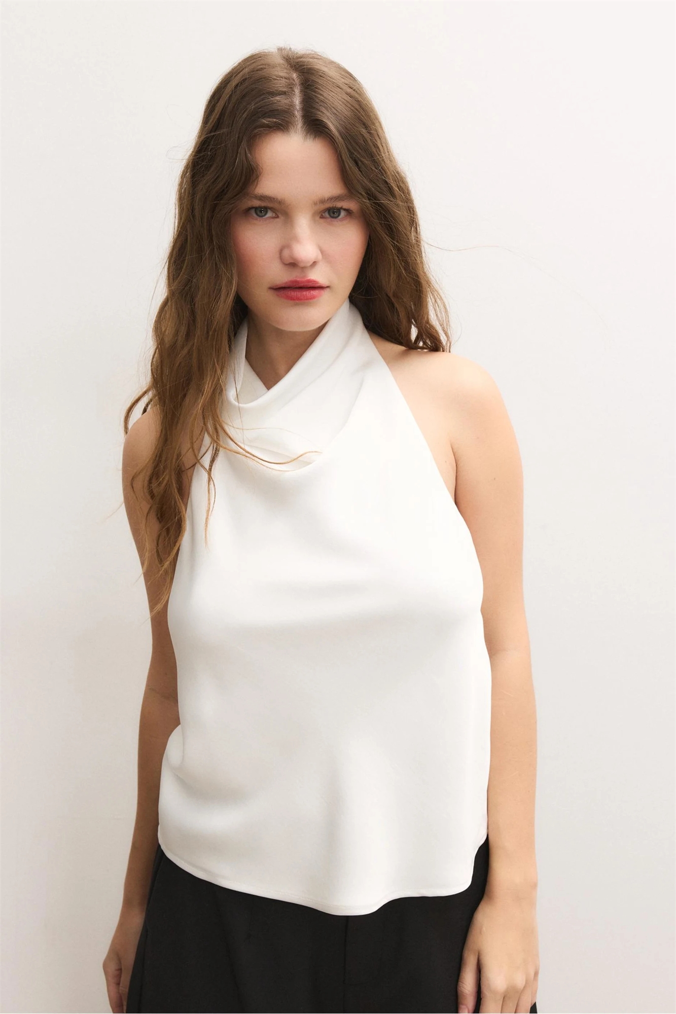 Топ с завязками на шее с эффектом сатина