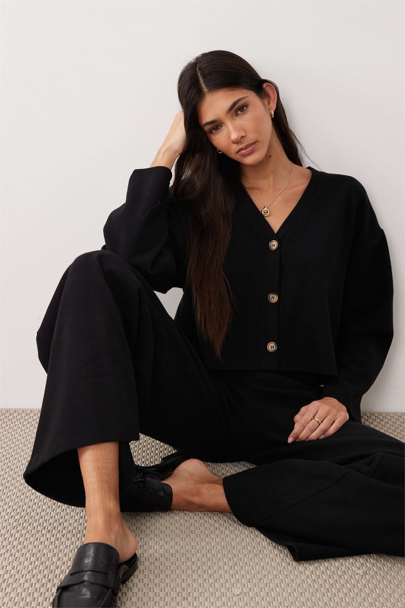 Кардиган с V-образным вырезом из ворсованной ребристой ткани