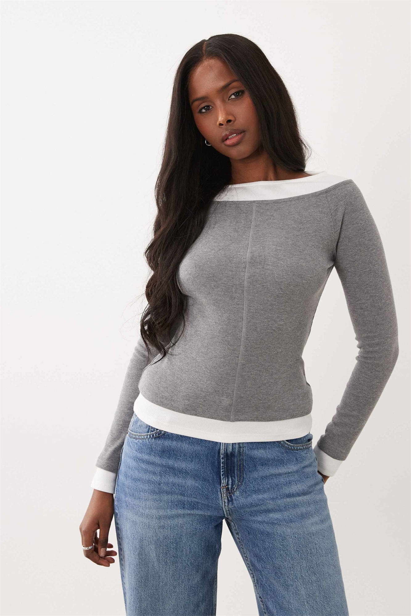 Топ с открытыми плечами, с ребристой текстурой и двумя слоями
