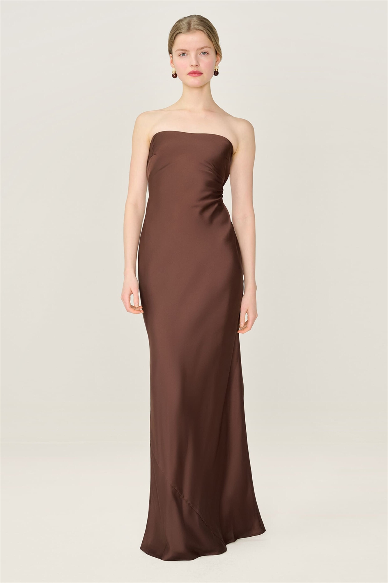 Платья amdra: атласное макси-платье без бретелек