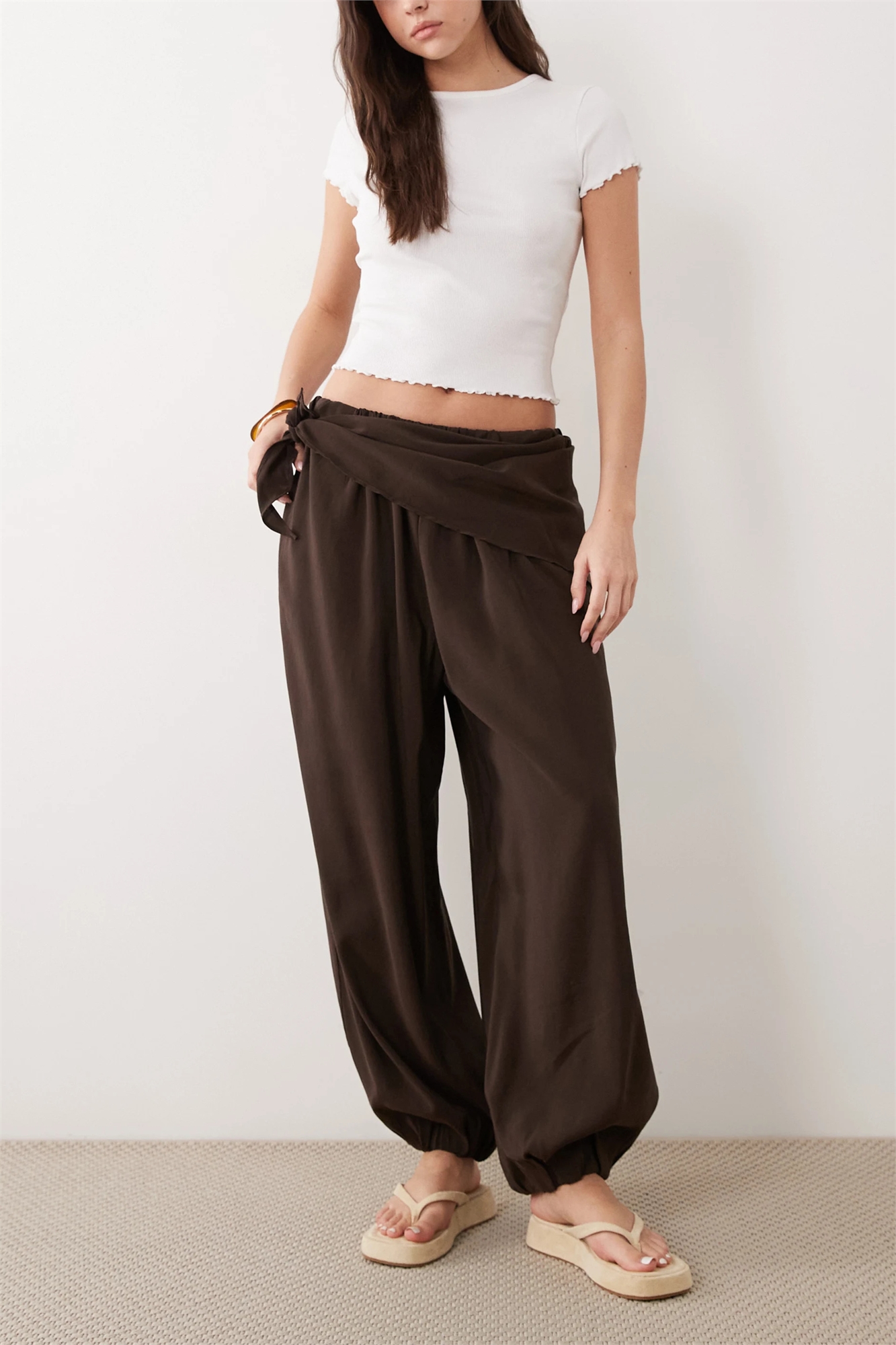 Брюки-балоны с завязкой на талии в модном стиле