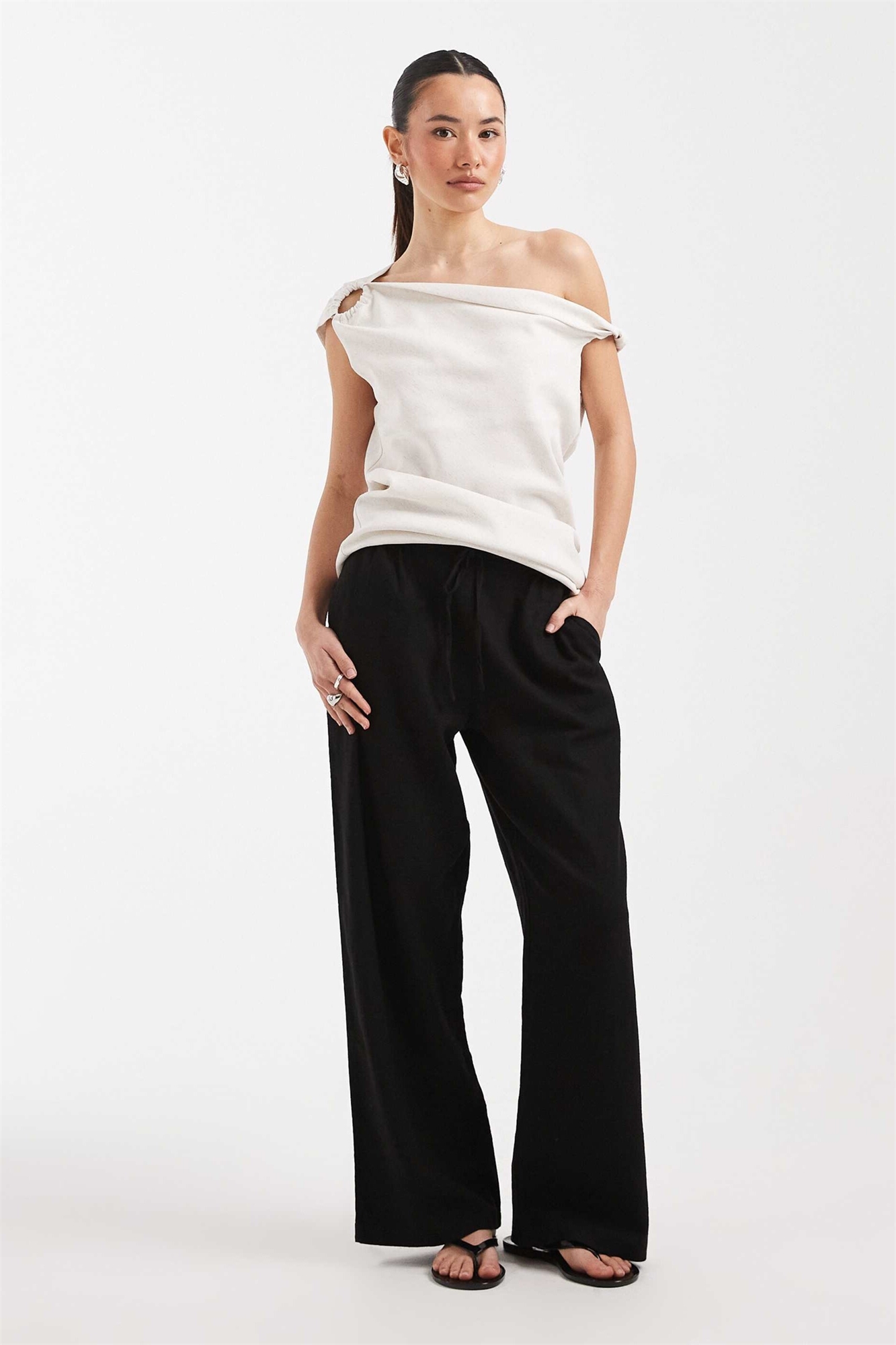 Брюки из льна с широкими брючинами
