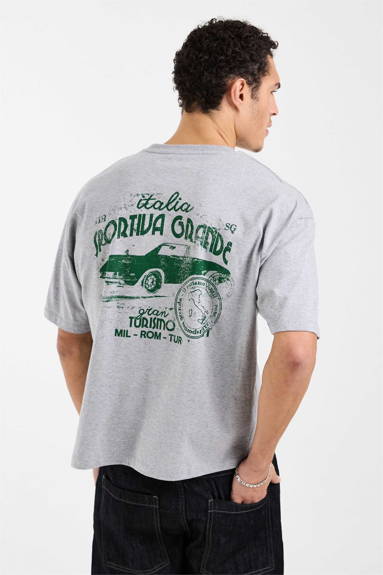 Объёмная футболка свободного кроя с принтом в виде спортивного автомобиля