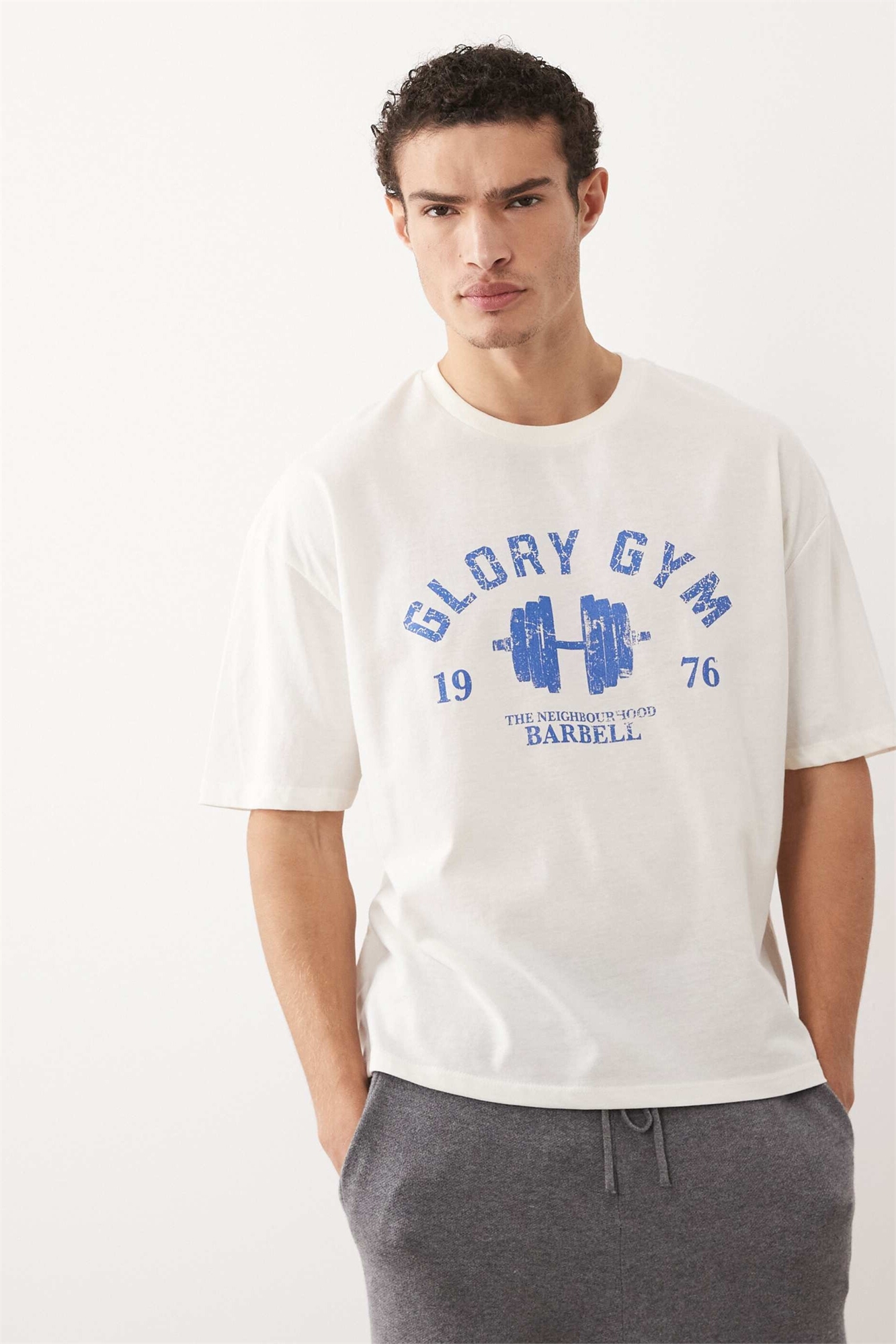 Объёмная футболка свободного кроя с принтом в стиле спортзала