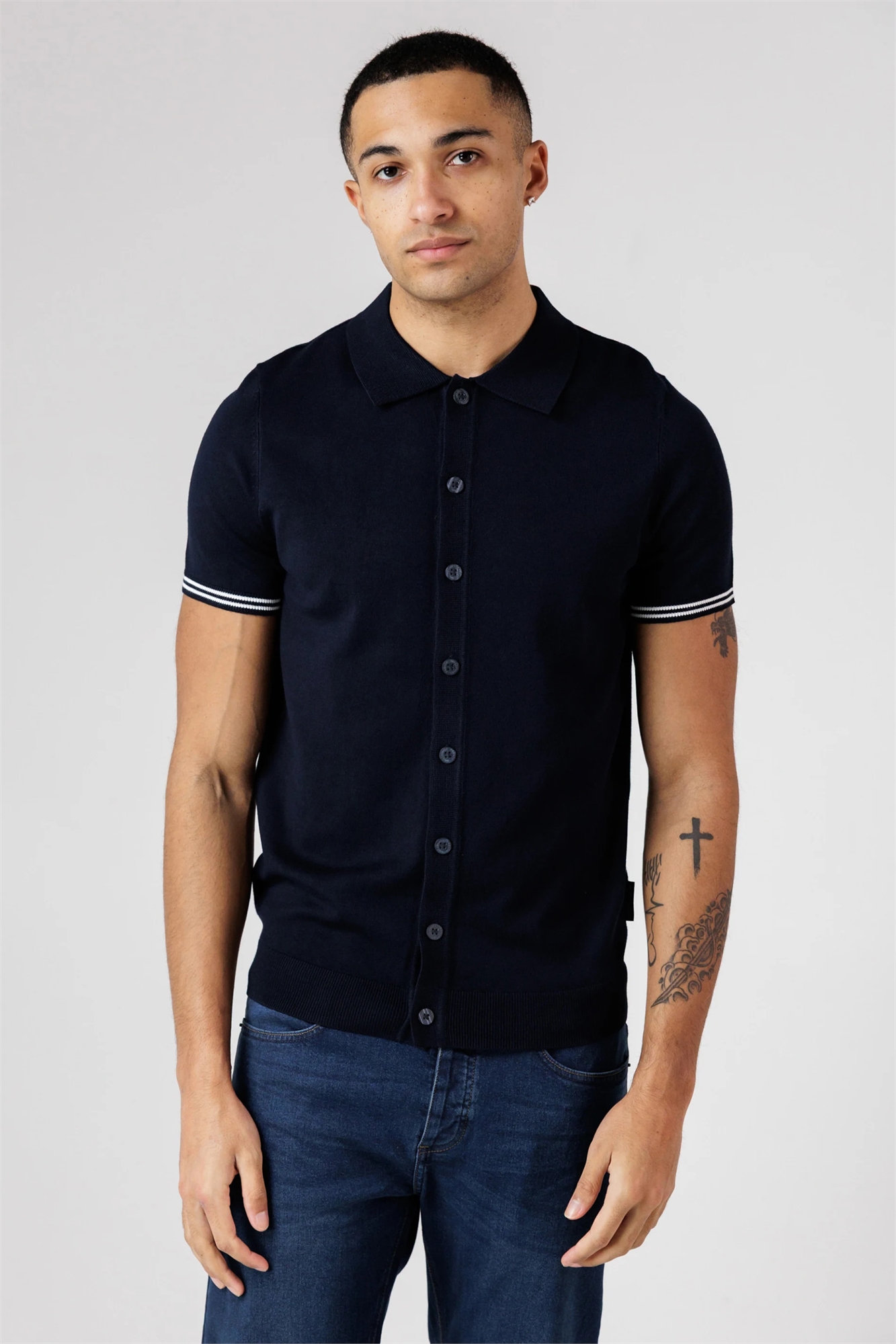 Полурубашка-поло с короткими рукавами, пуговицами и полоской на рукаве