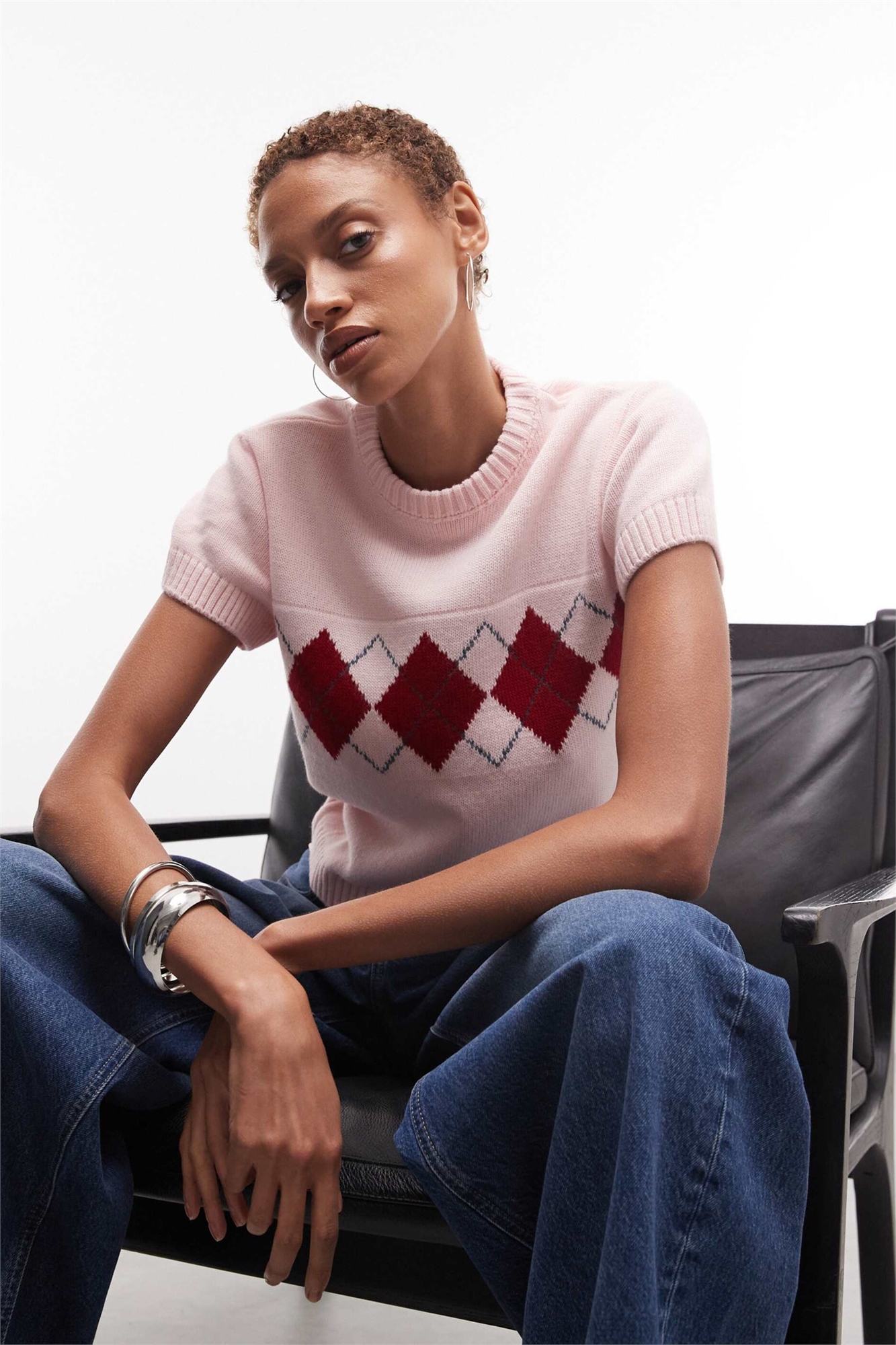 Трикотажный топ с короткими рукавами в клетку