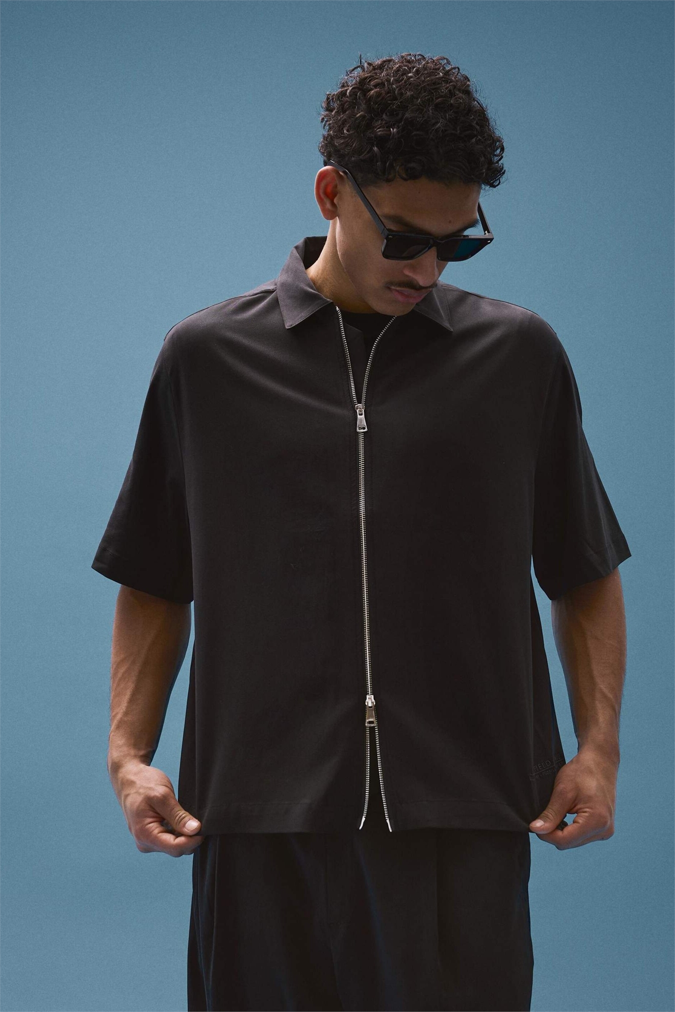 Свободная рубашка с короткими рукавами черного цвета