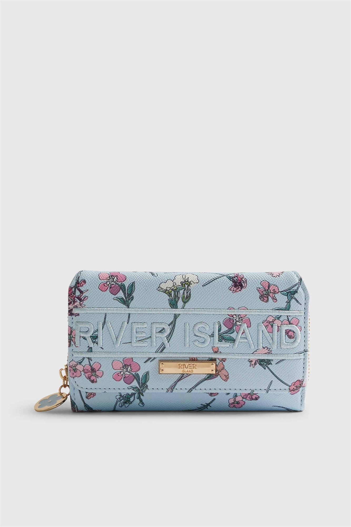 Кошелек с клапаном и логотипом в виде цветочного узора, синий - светлый