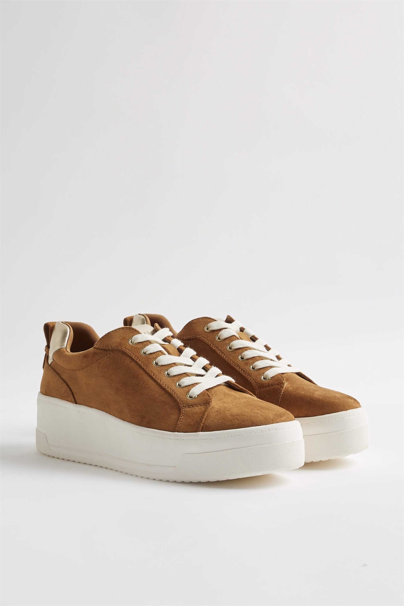 Кроссовки на плоской платформе из искусственной замши на шнурках