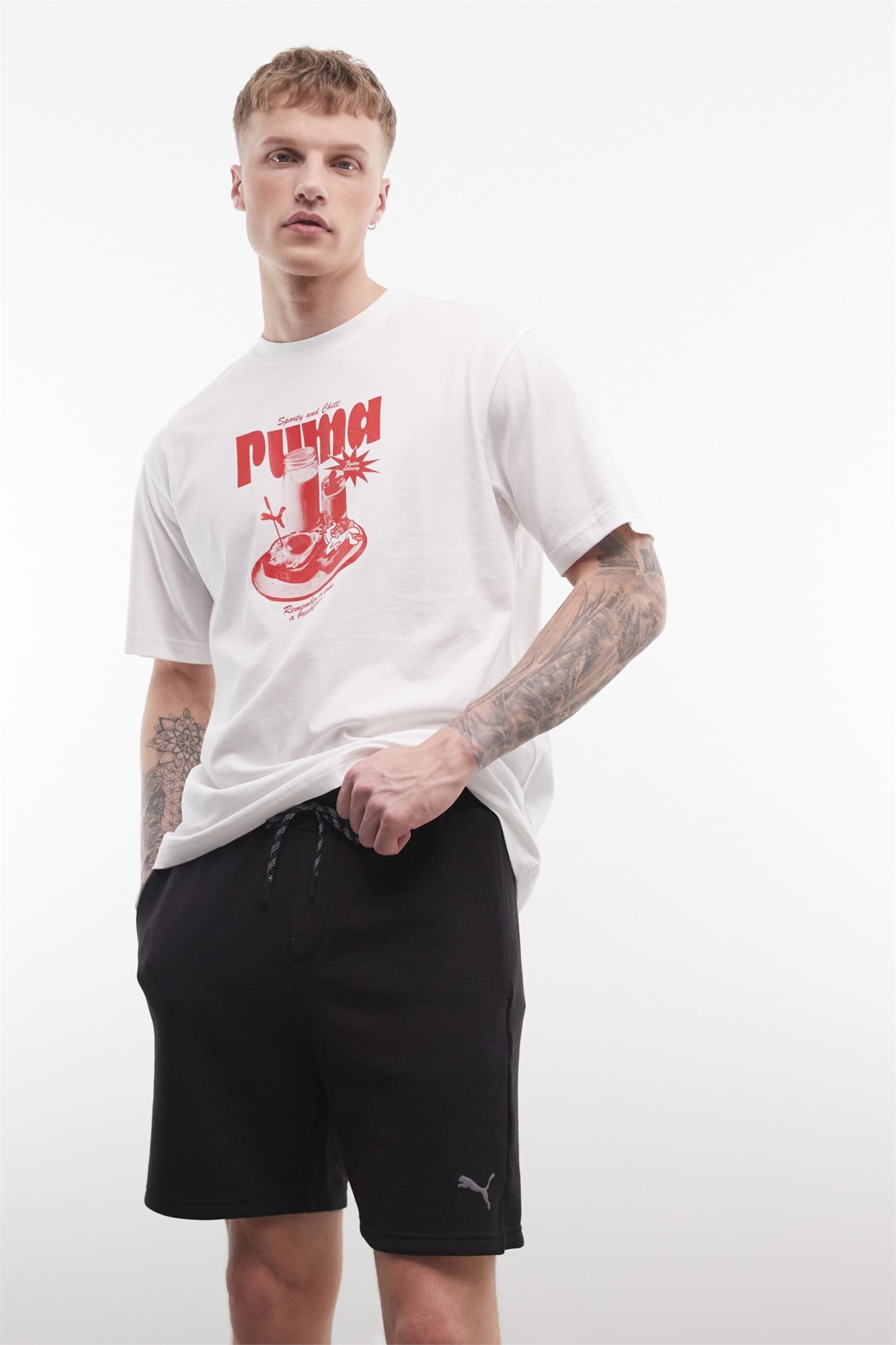 Ткань с четырехсторонней эластичностью. Использует технологию PUMA dryCELL. Отводит пот от кожи, а затем вытягивает его из ткани, чтобы ускорить испарение. Сохраняет прохладу и сухость во время тренировки. Основной материал: 78% полиэстер, 16% лиоцелл, 6% эластан.