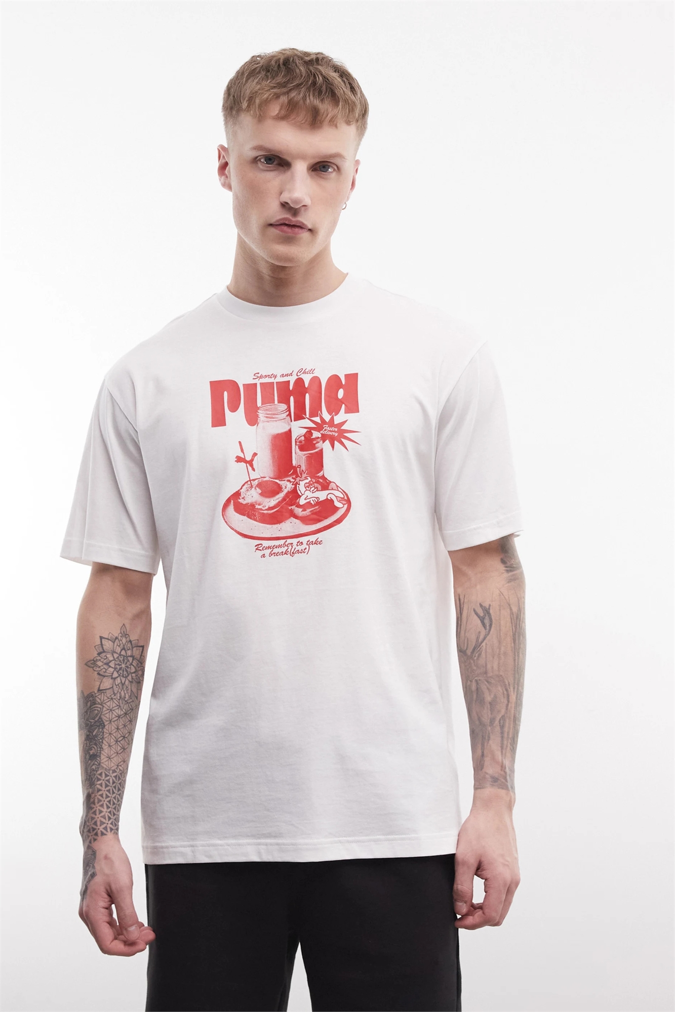 Футболка с принтом для непринуждённого завтрака с круглым вырезом