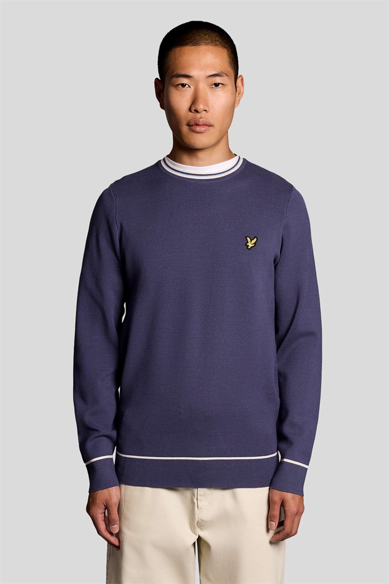 Свитер средней плотности с вязаными вставками и круглым вырезом