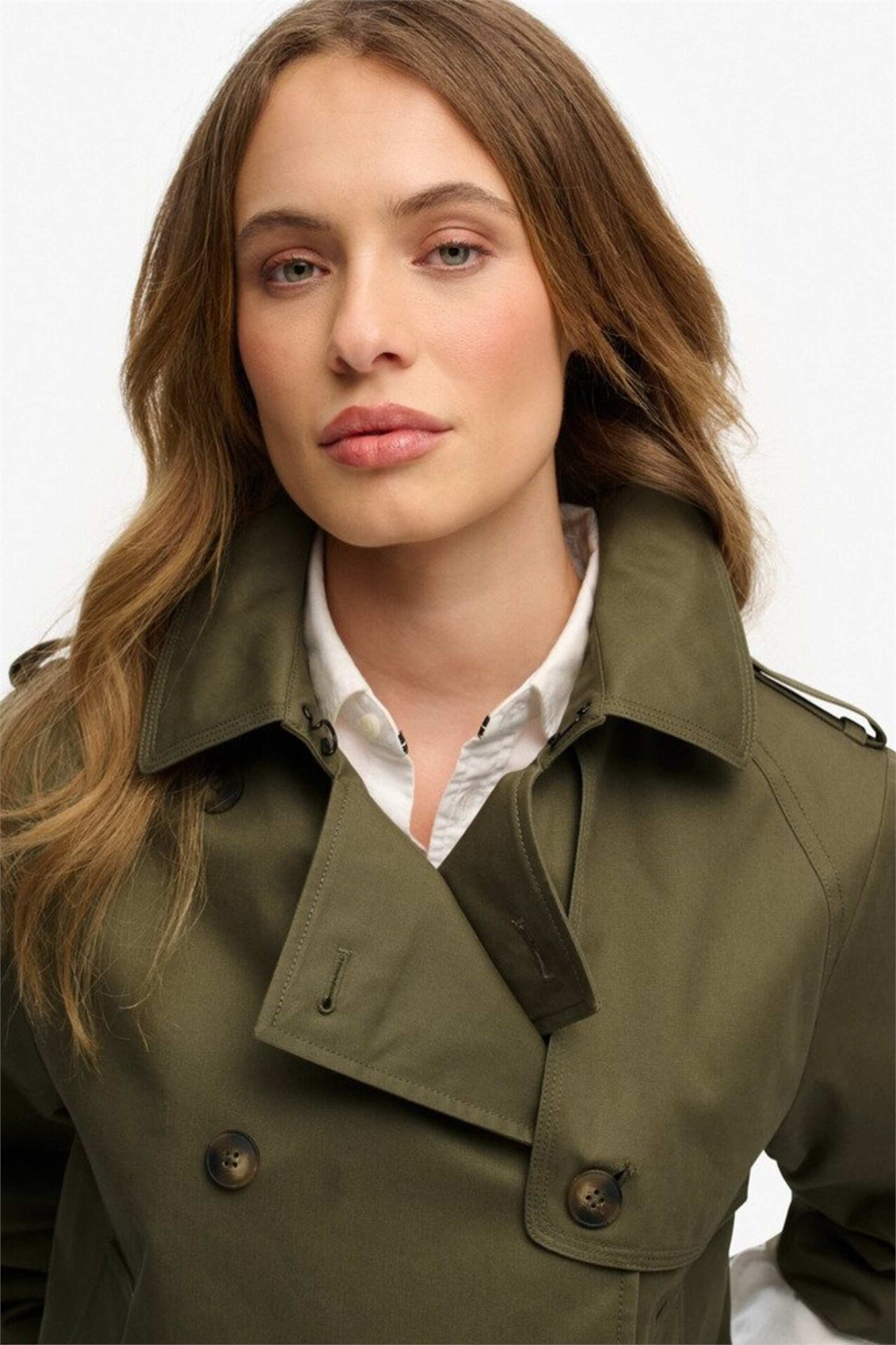 Короткий тренч пыльно-оливкового цвета