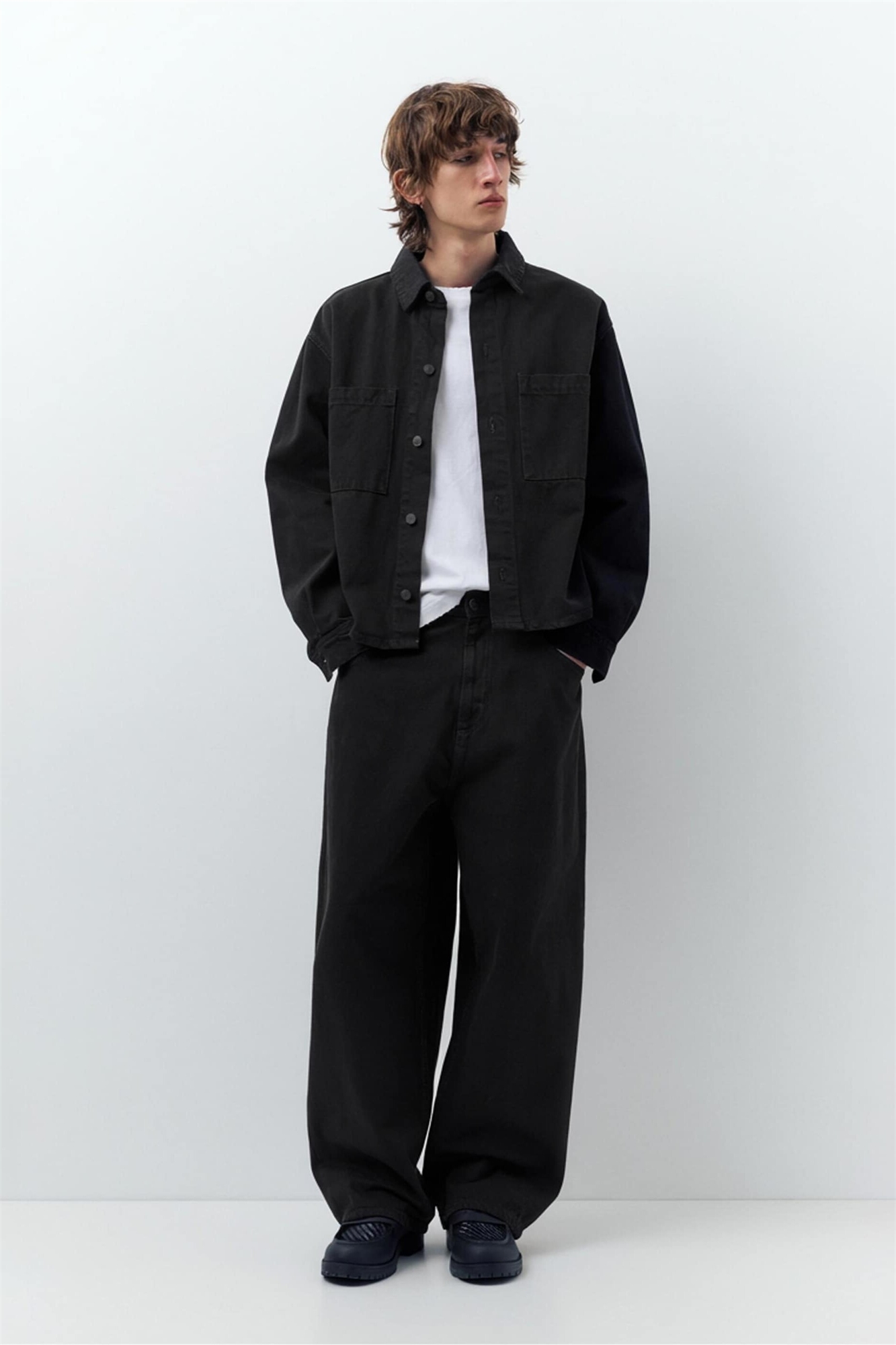 Неэластичный деним: черная стирка Основной материал: 100% хлопок.