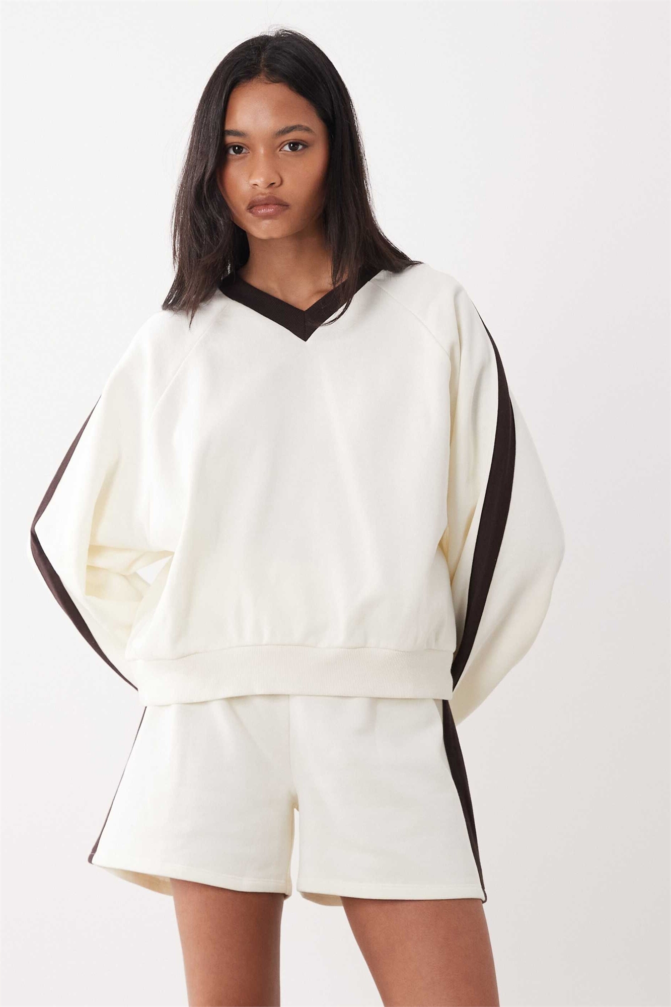 Свитшот с V-образным вырезом и полосками темно-синего и кремового цветов co-ord