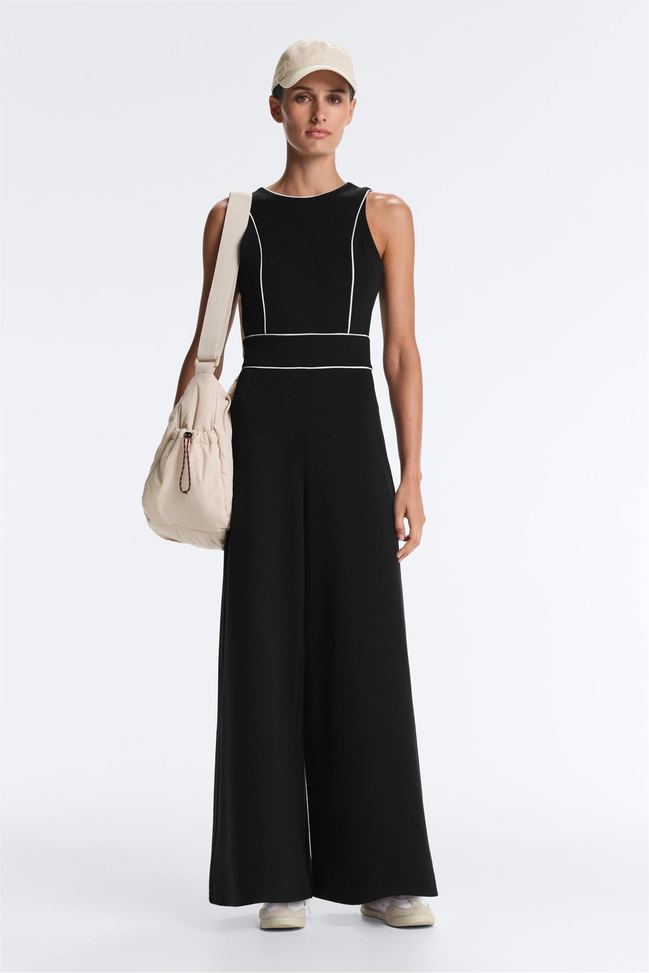 Длинный комбинезон из пике с отстрочкой, хлопок