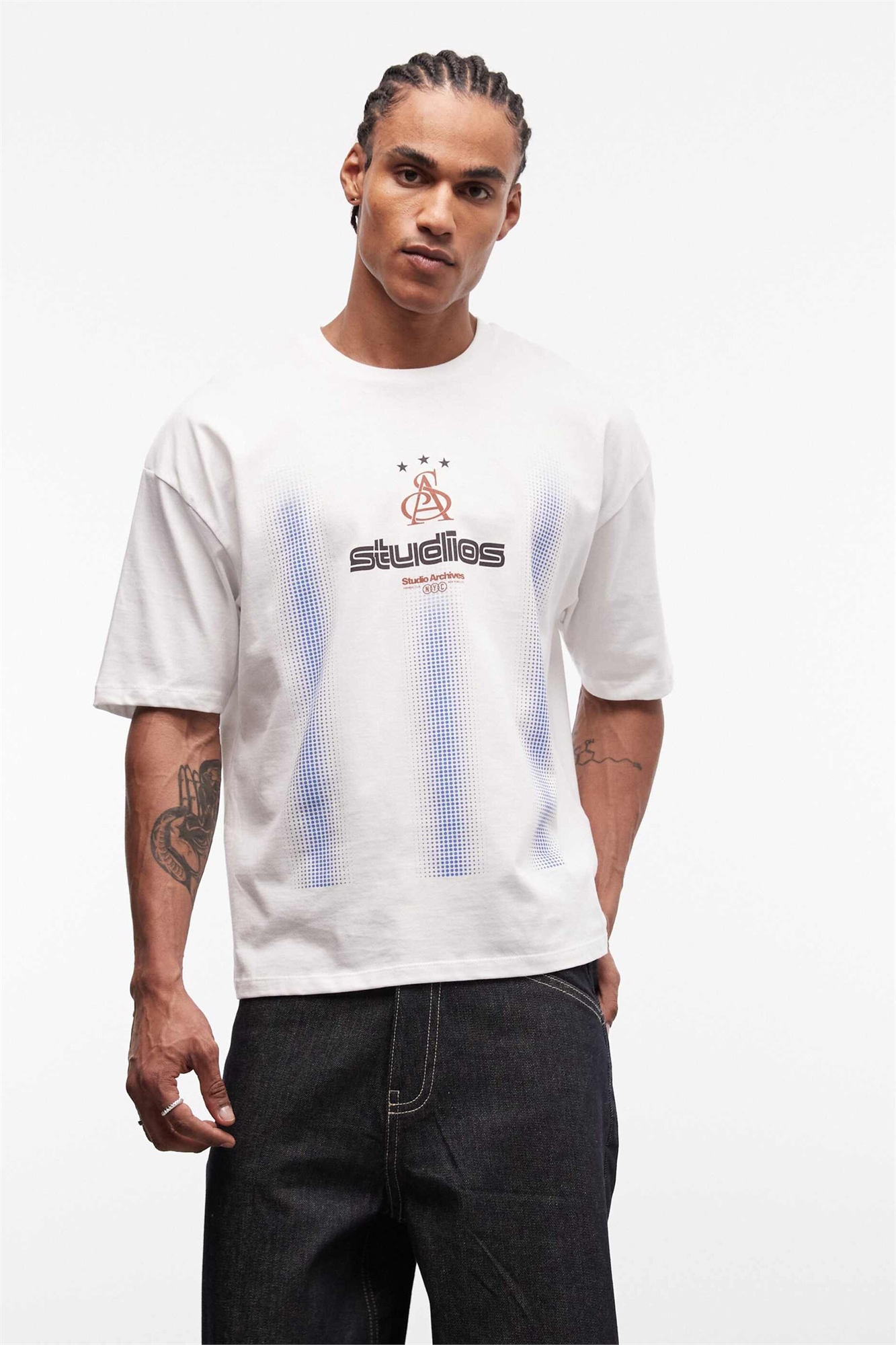 Футболка свободного кроя с принтом по всей поверхности и надписью на груди