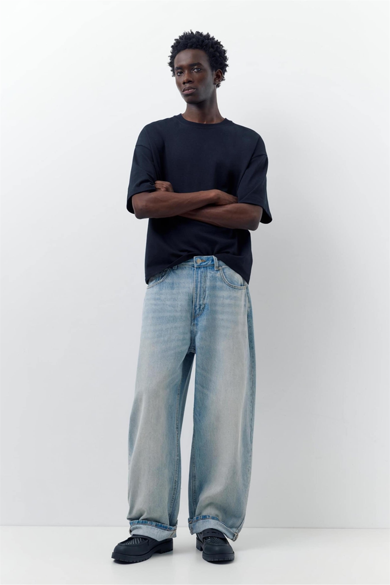 Джинсы свободного кроя с завышенной талией