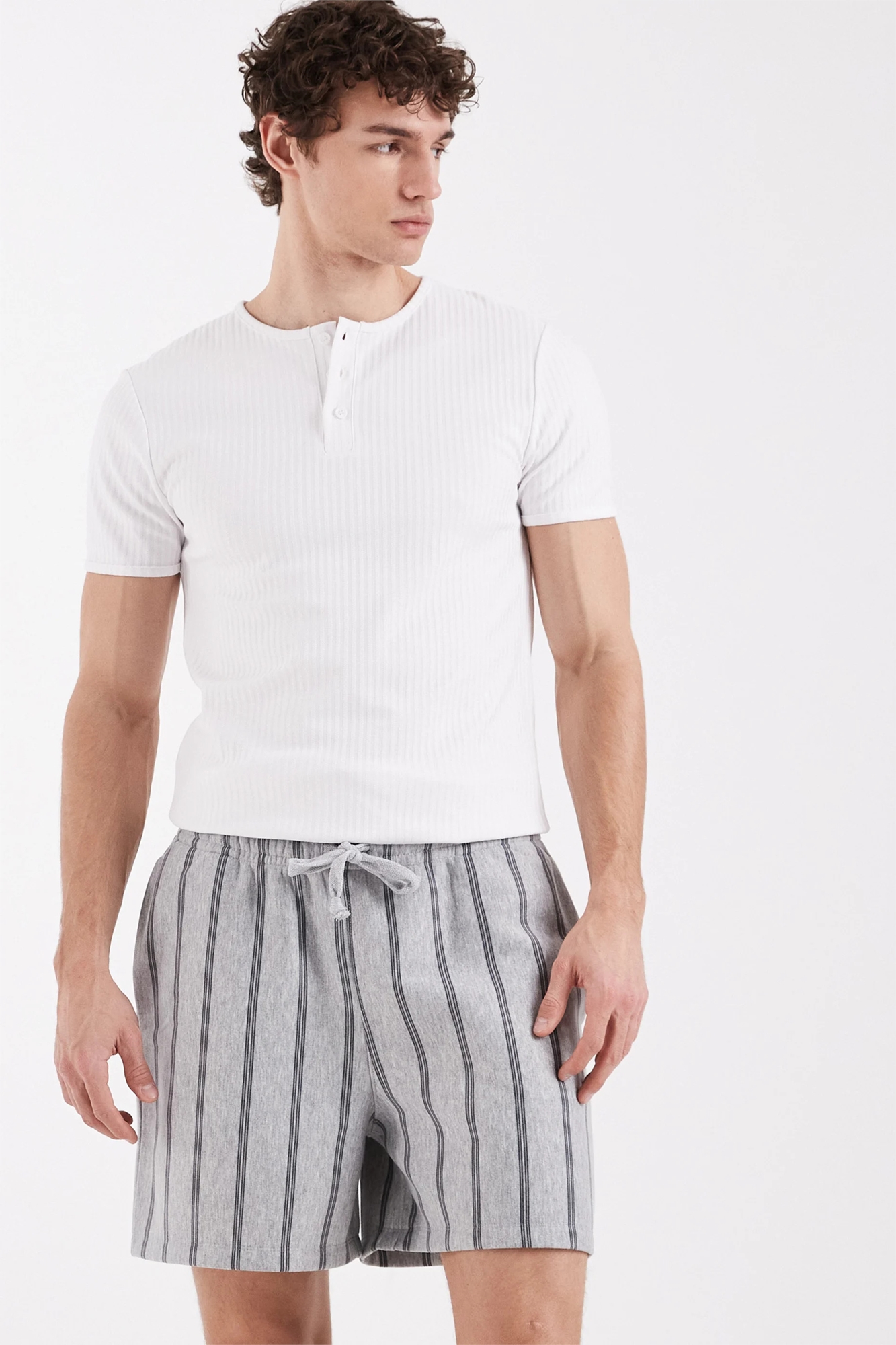 Увеличенный размер, в полоску, укороченная длина, шорты