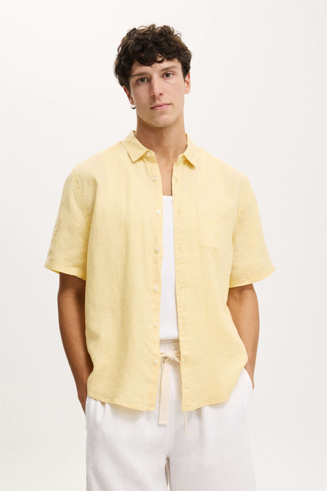 Рубашка из льна с короткими рукавами в непринуждённом стиле