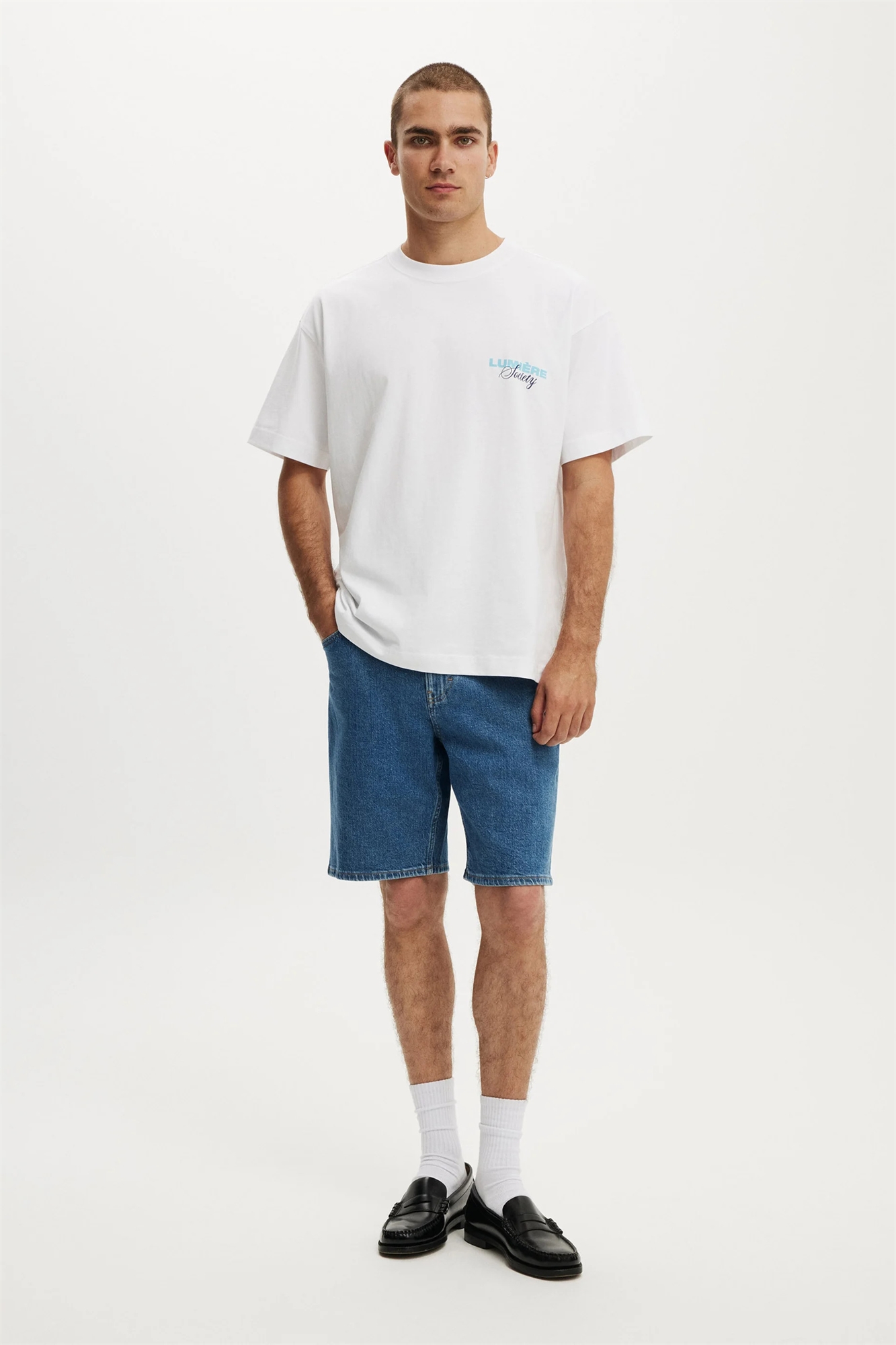 Джинсовая ткань без эластана: оттенок «средне-синий». Основной состав: 99% хлопок, 1% эластан.