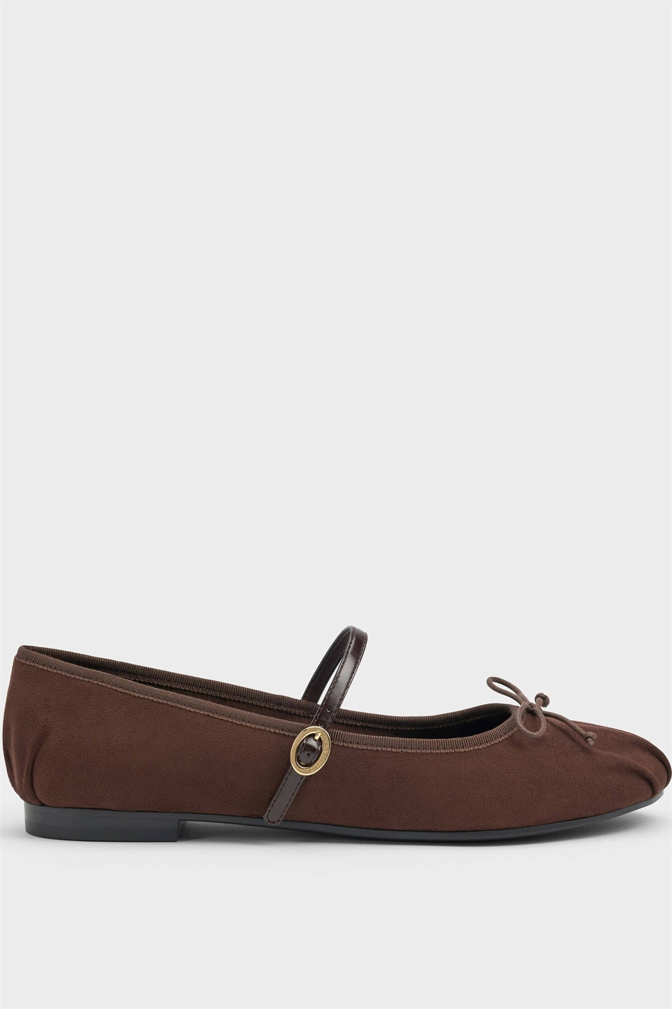 Балетки «Мэри Джейн» с бантиком из искусственной замши от Emiko