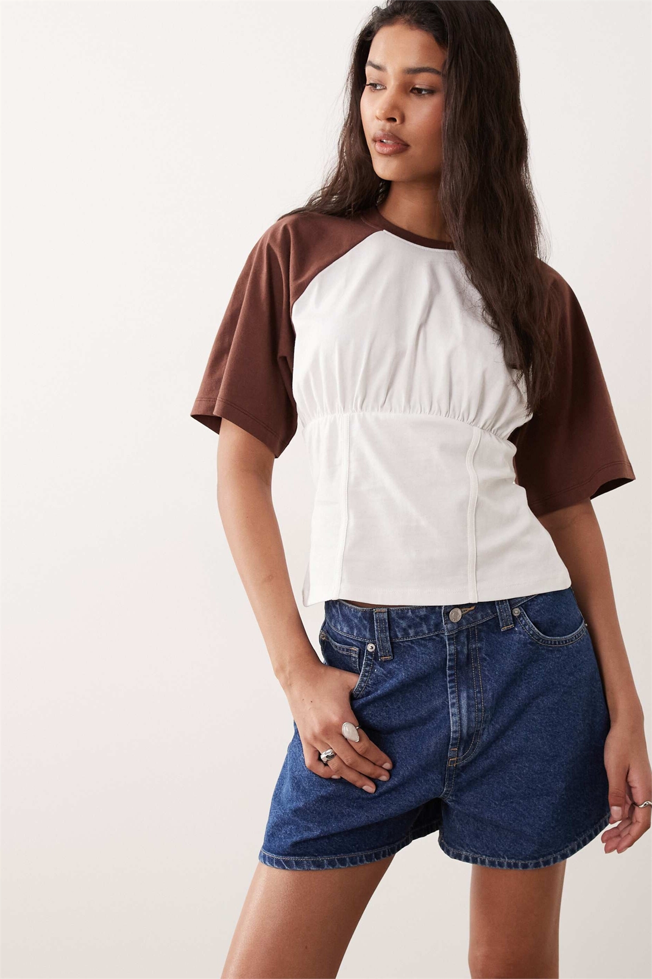 Футболка в стиле бейсболки с корсетным швом и затянутой талией