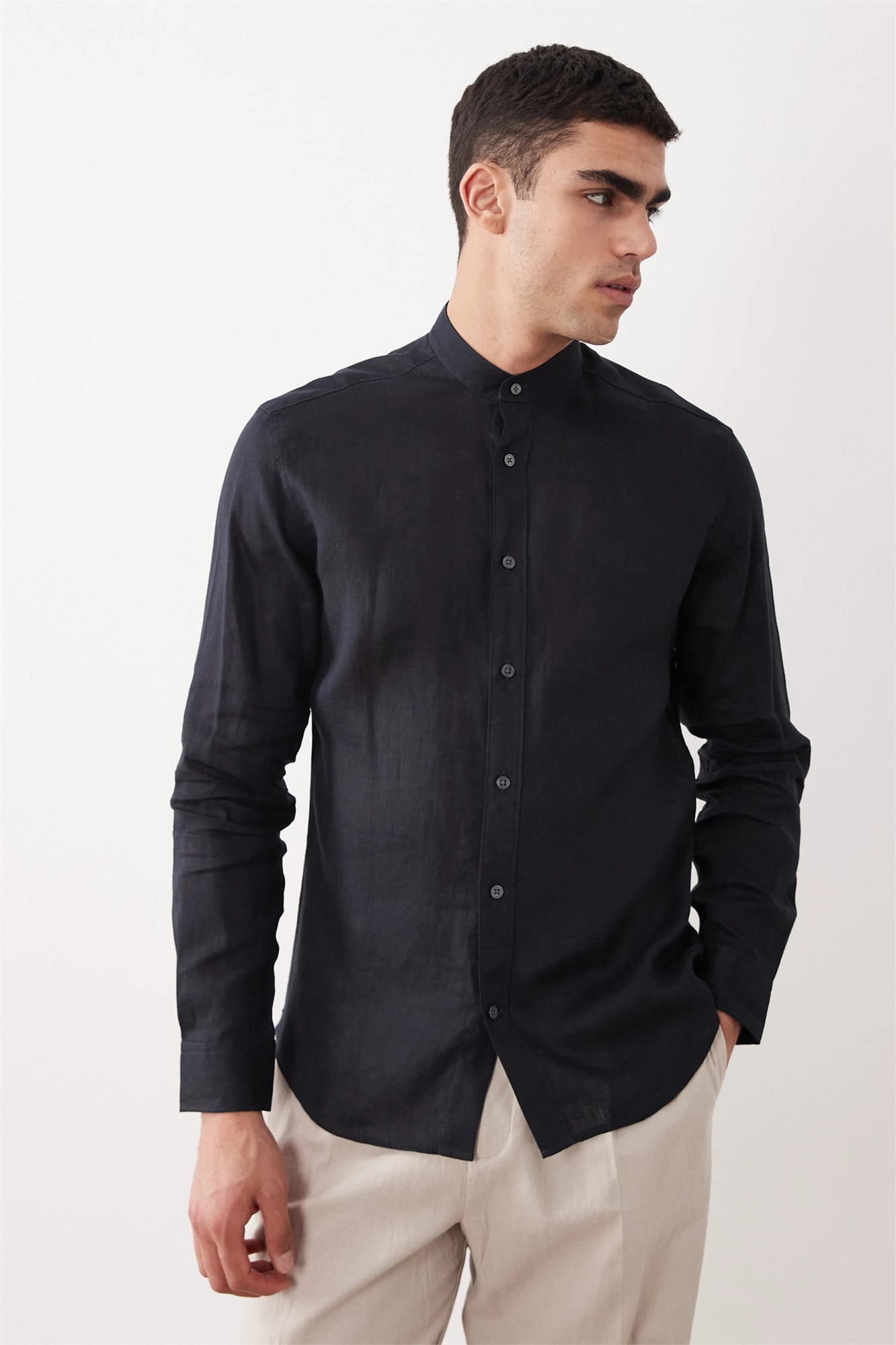 Рубашка из 100% льна с воротником-мао и рукавами-реглан
