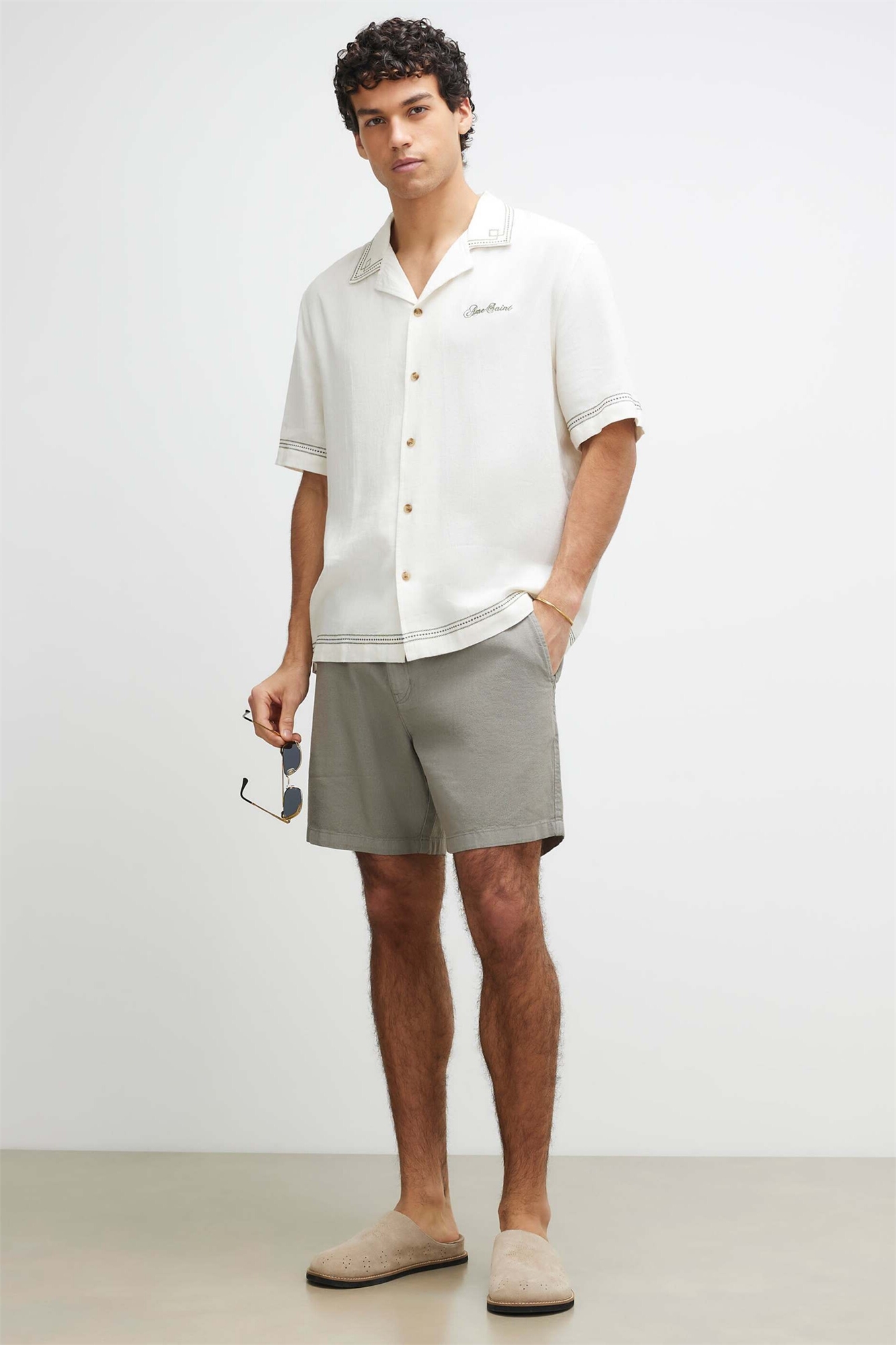 Шорты свободного кроя из смесовой ткани с льном, надеваемые через голову