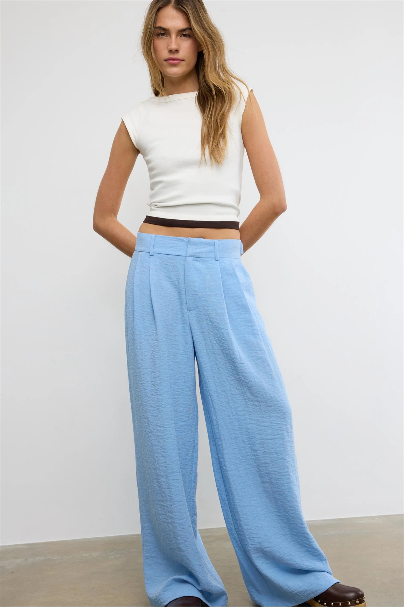 Брюки в стиле рустик с широкими брючинами и регулируемыми пуговицами