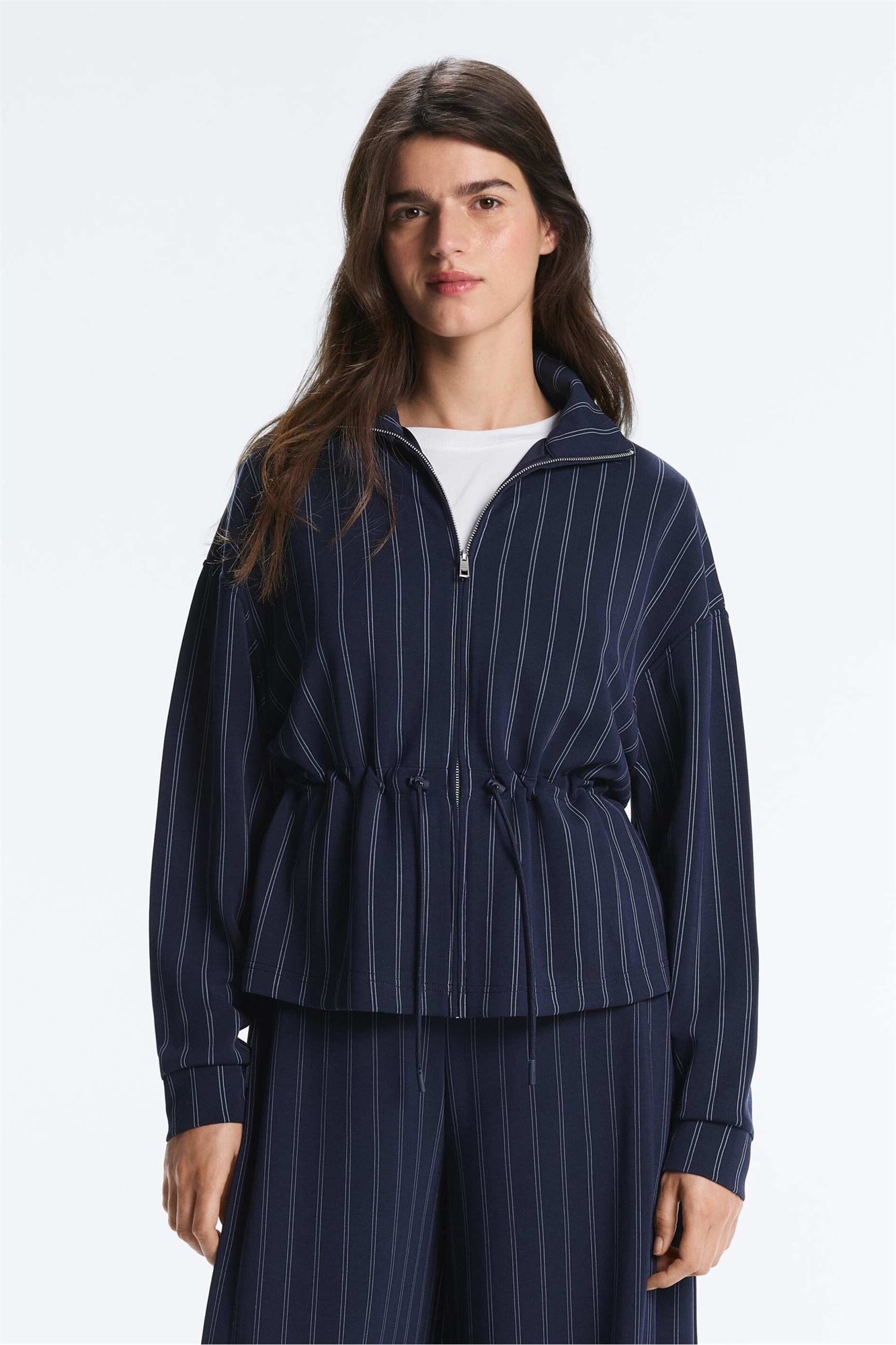 Куртка из модала с мягкой текстурой, регулируемой талией и высоким воротником