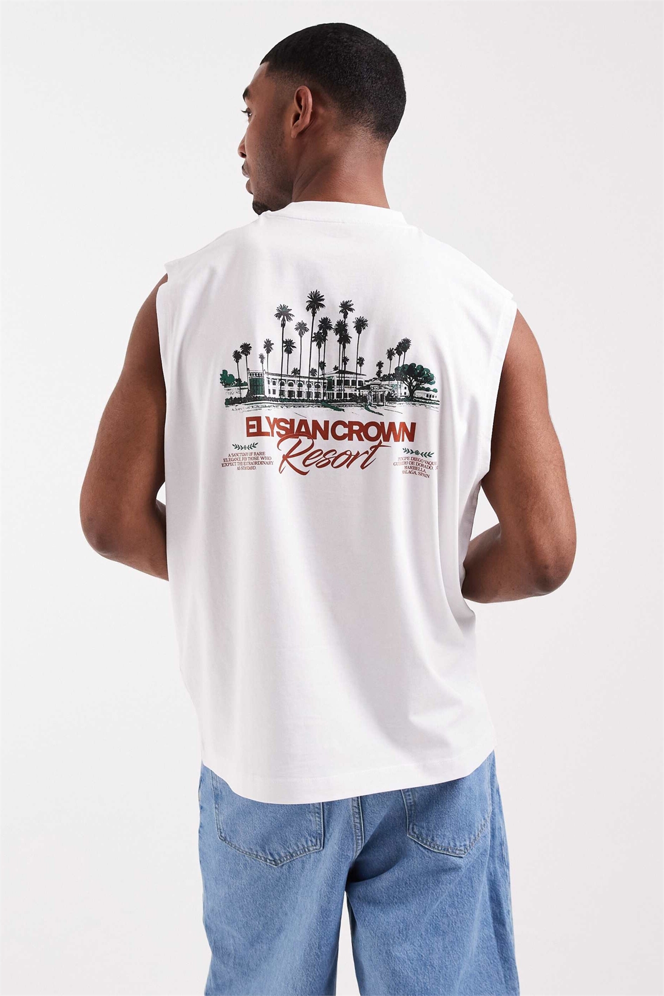 Объемная футболка с принтом в курортном стиле