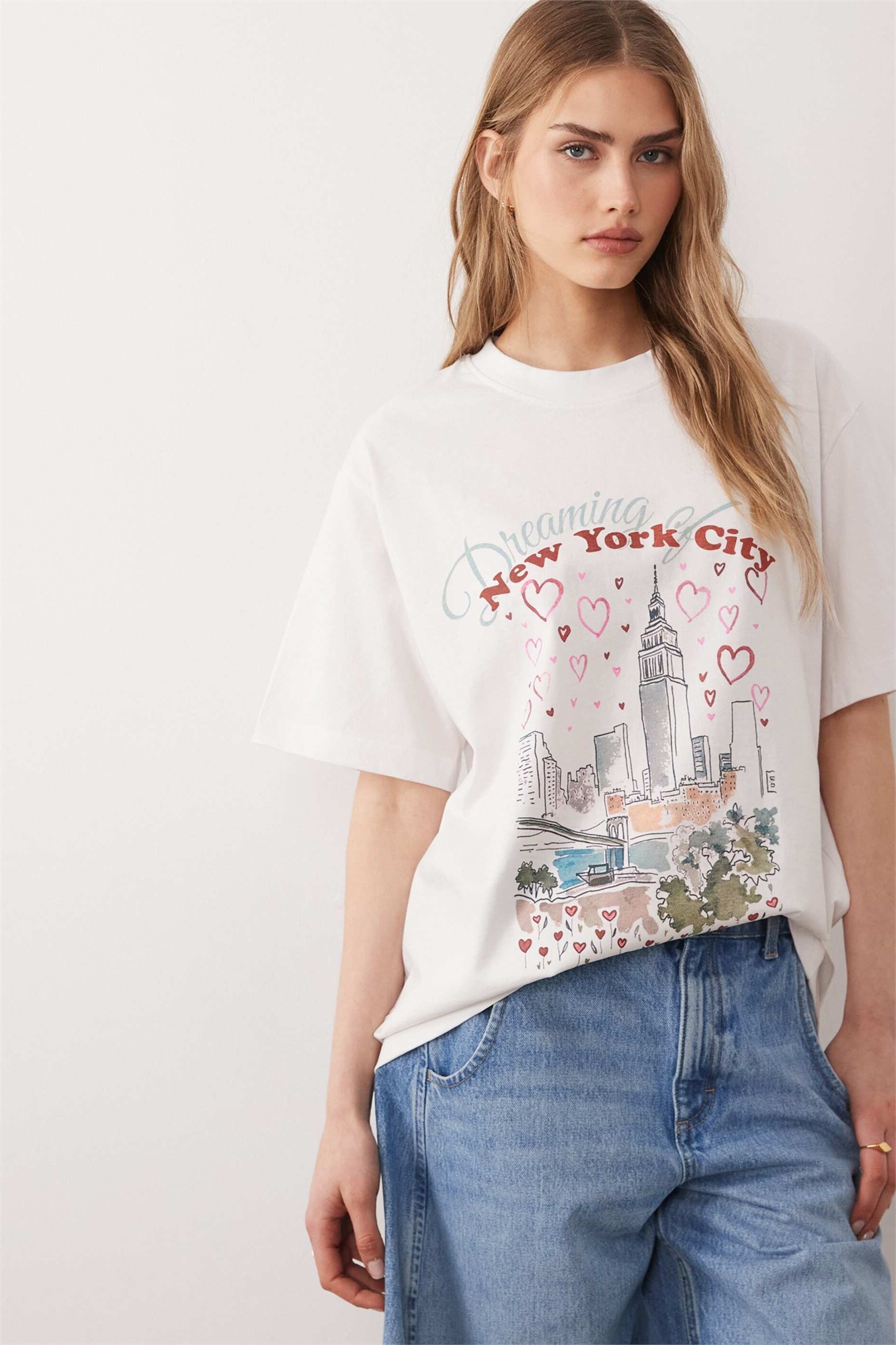 Футболка свободного кроя с короткими рукавами и принтом с изображением Нью-Йорка