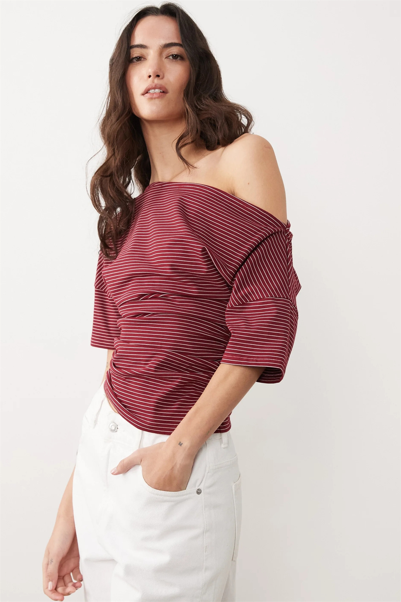 Топ с лодочным вырезом и зауженной талией