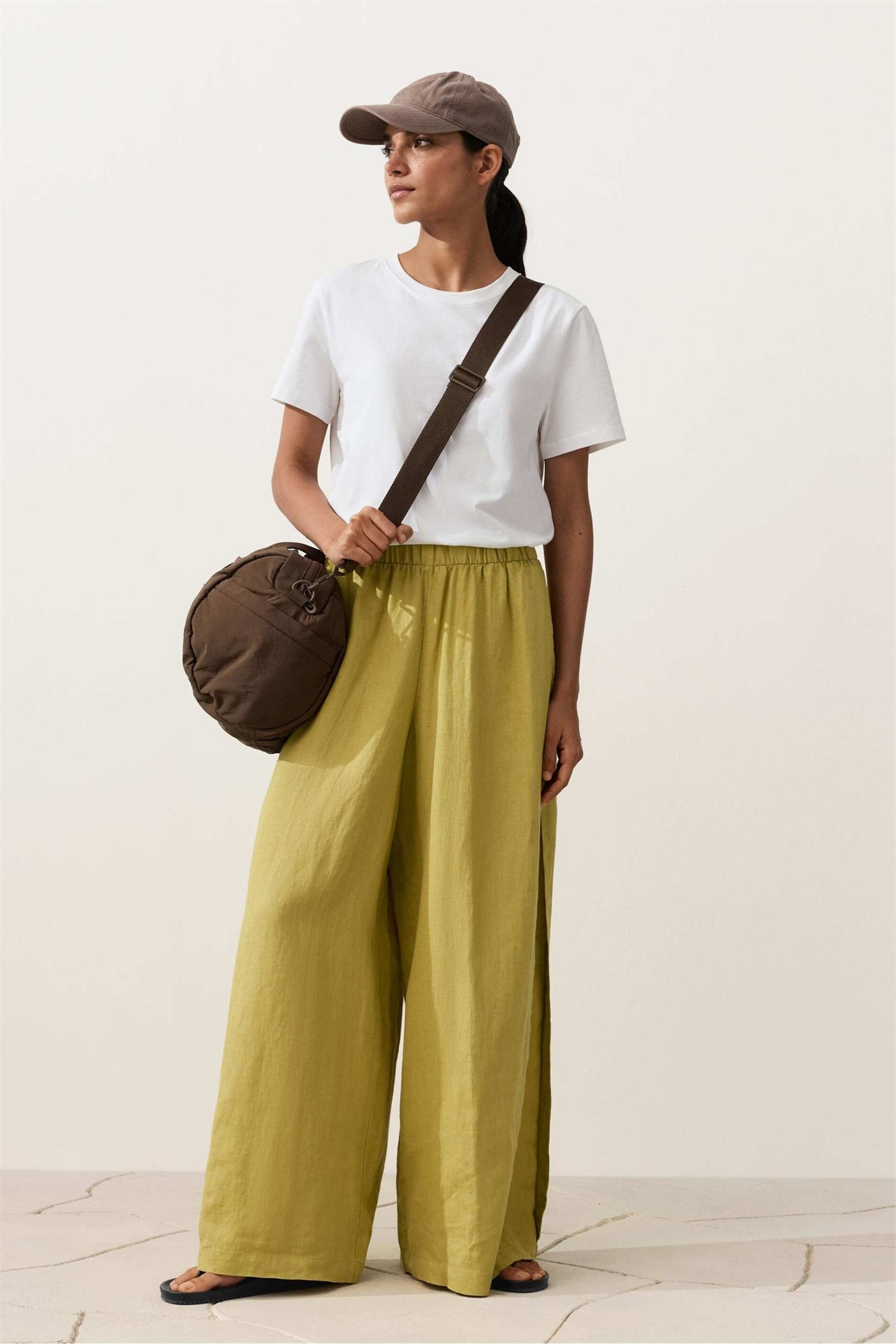 Брюки из 100% льна с широкими брючинами и боковой складкой