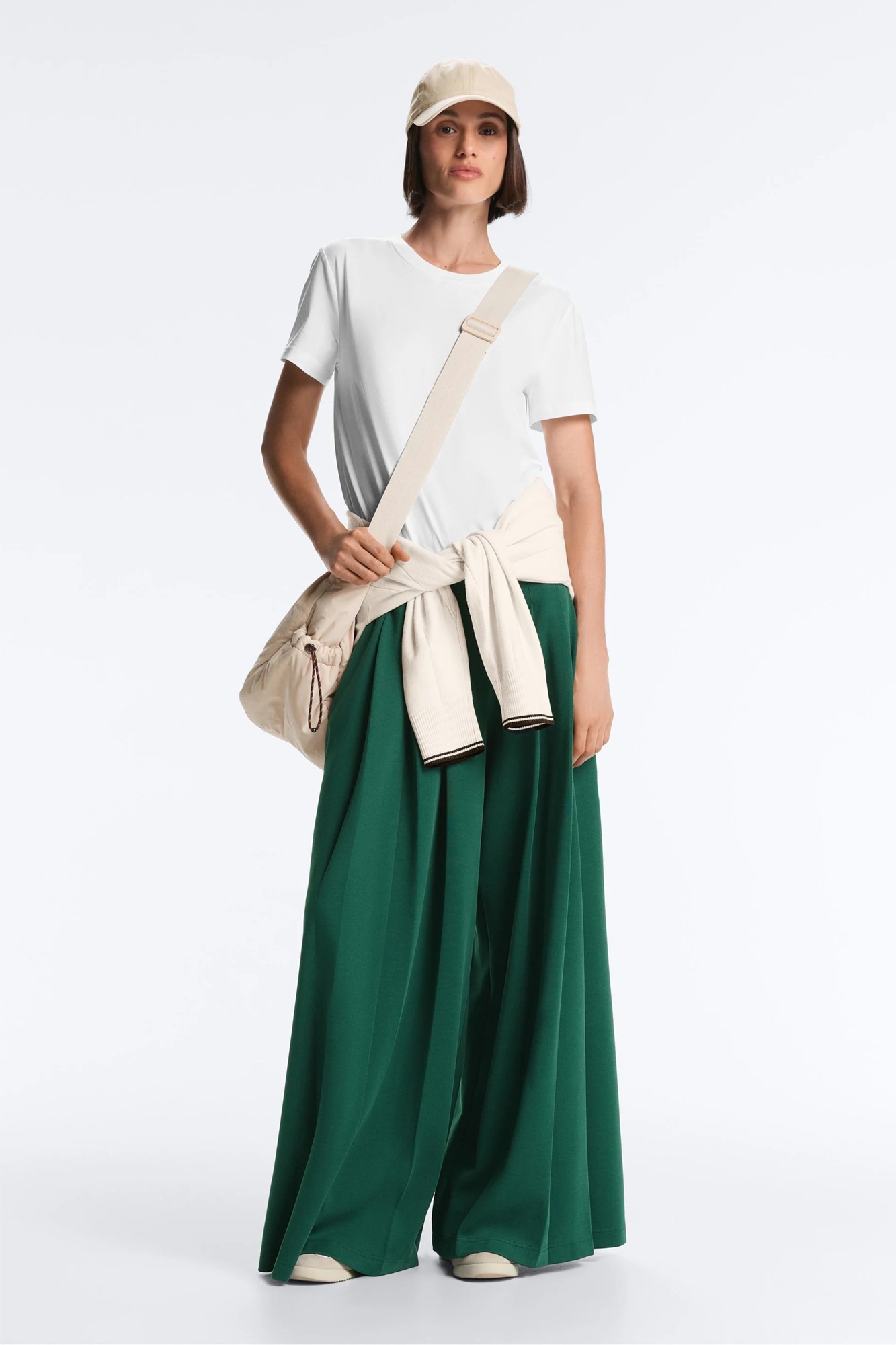Хлопковые брюки с широкими брючинами и плиссировкой из пике