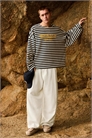 Штаны свободного кроя с льняными вставками