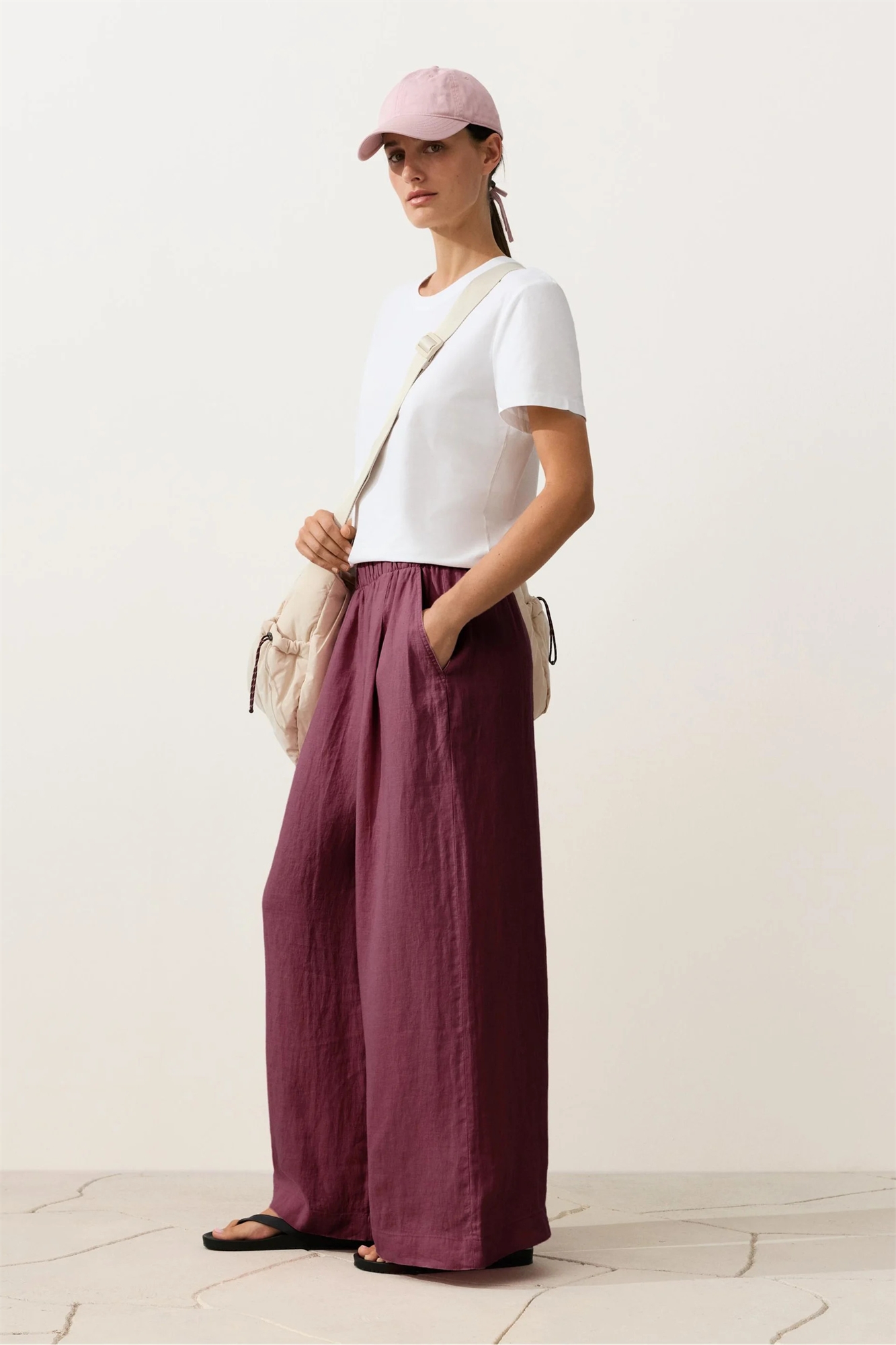 Брюки из 100% льна с широкими брючинами