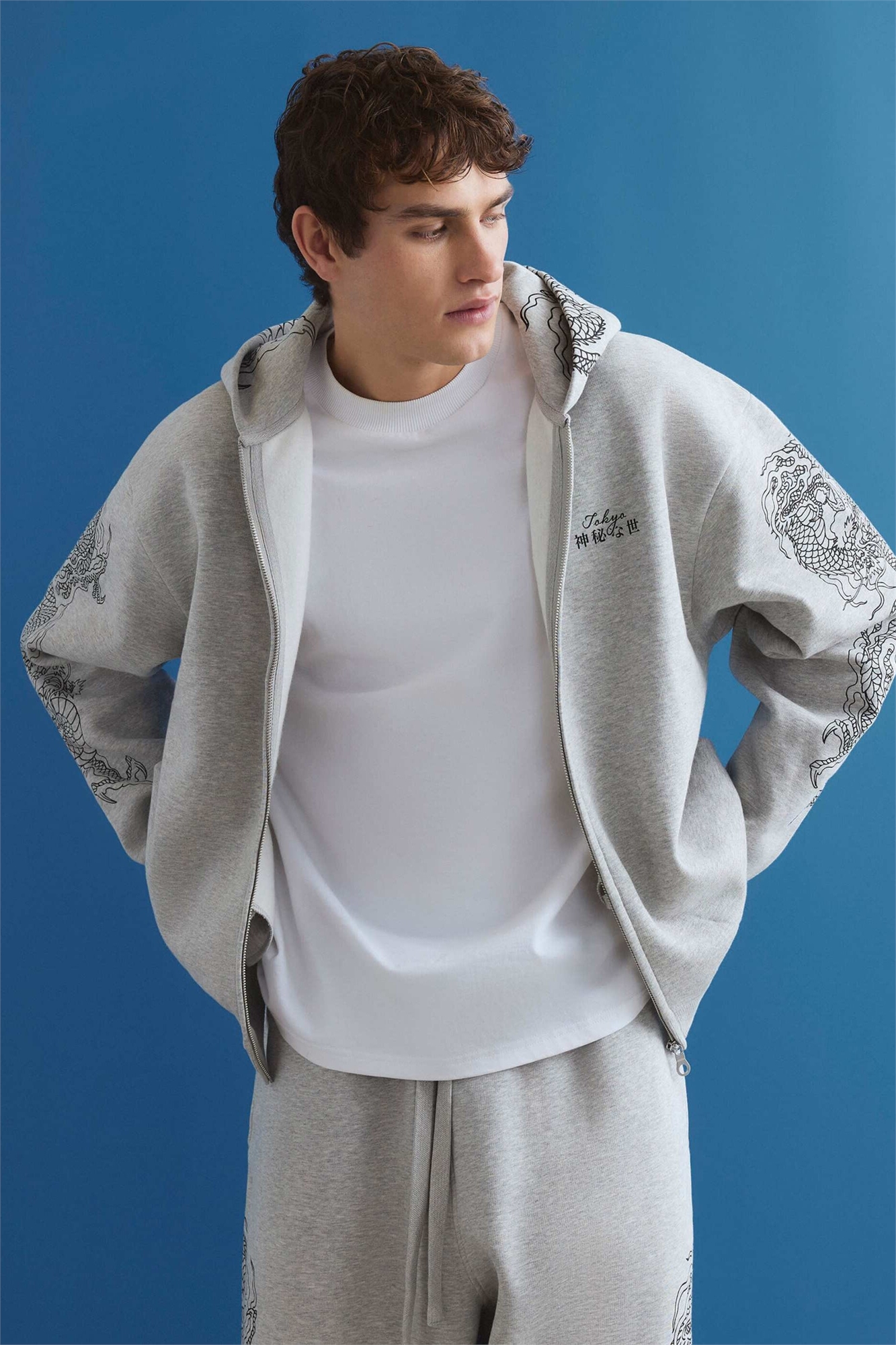 Худи с капюшоном в виде японского дракона свободного кроя