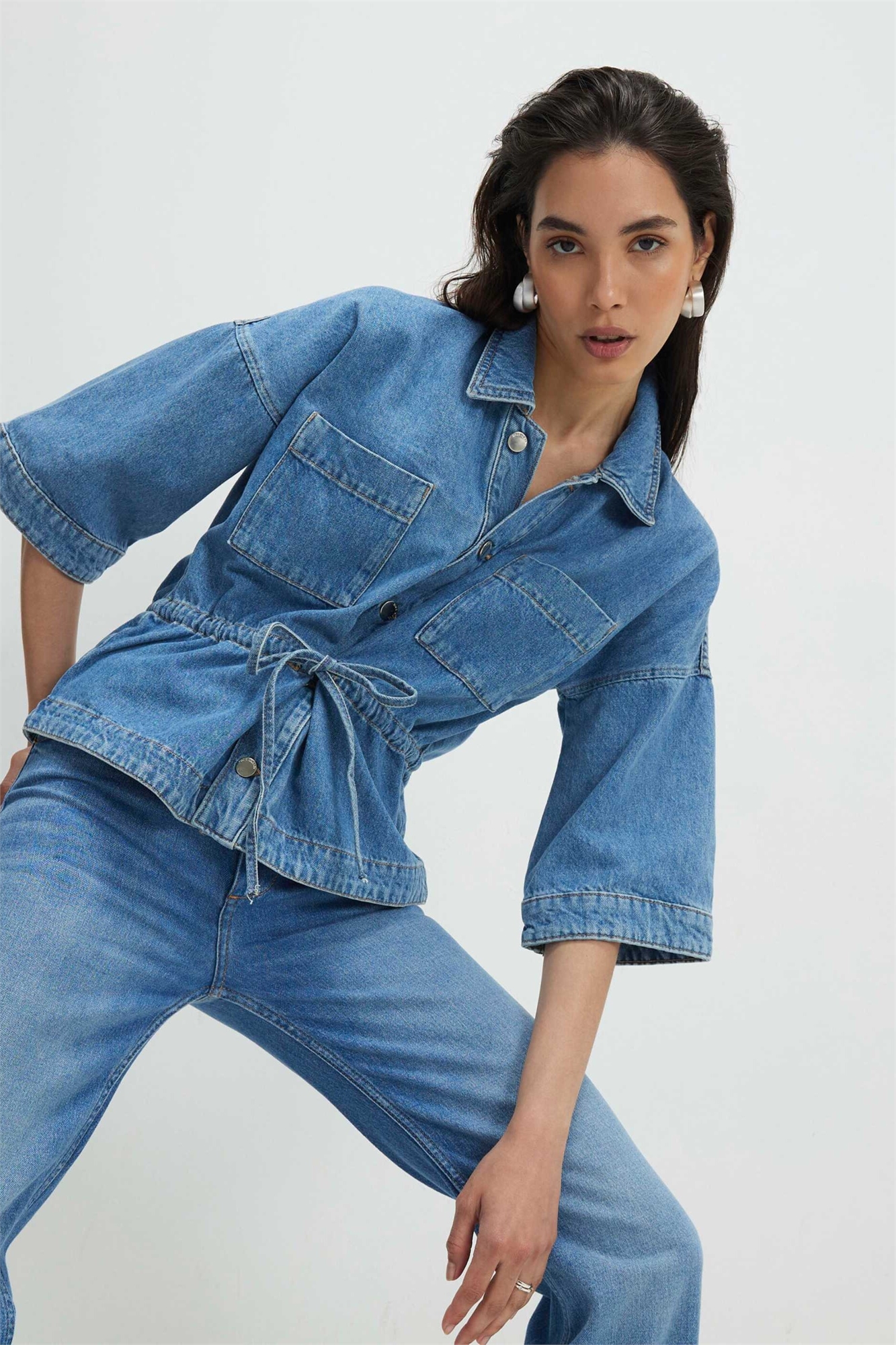 Топ из денима с завязками спереди