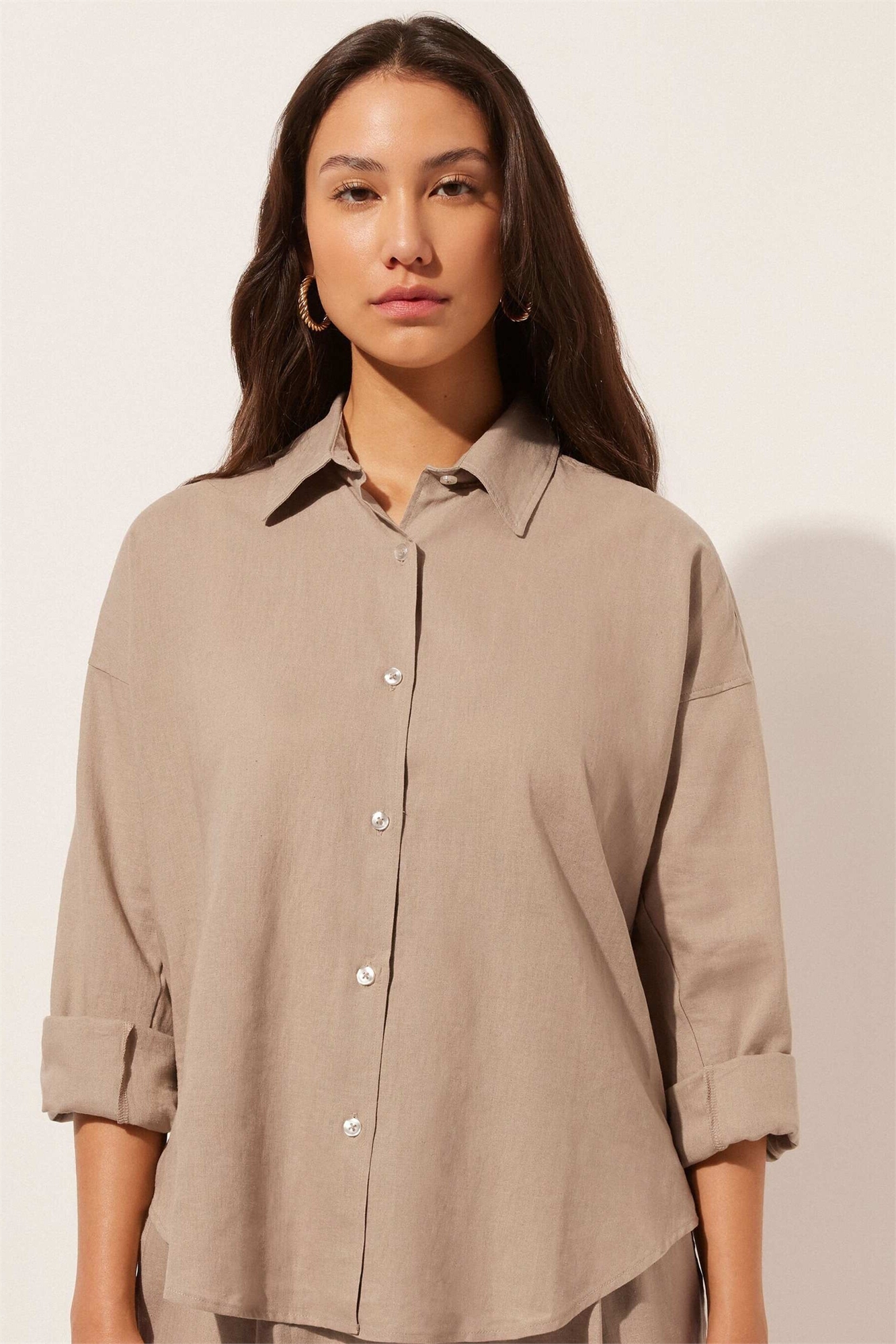 Короткая рубашка из льна и вискозы