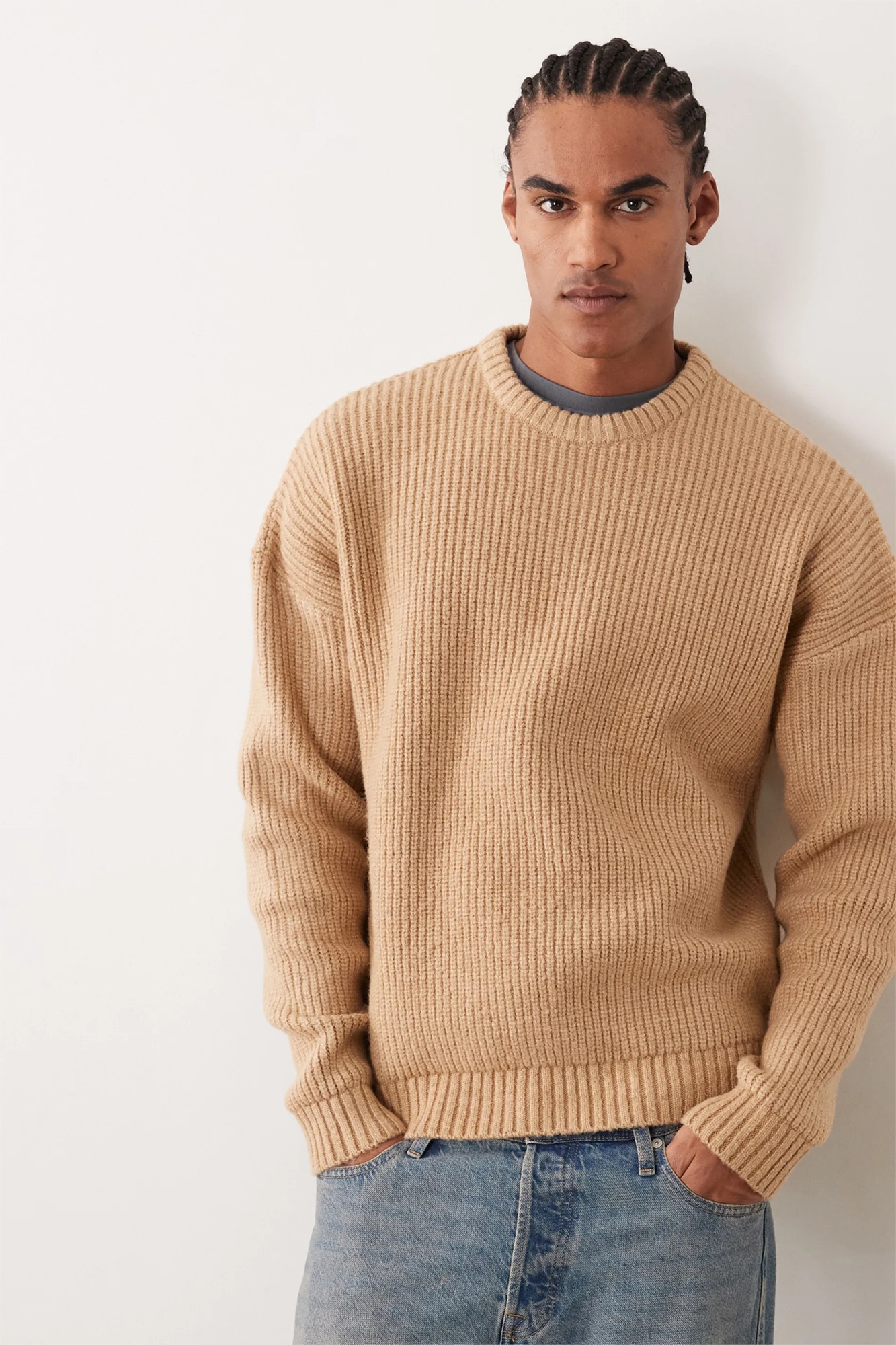 Свитер из трикотажа с узором «рыбацкая резинка» в стиле «бокс» с экстремально свободным кроем