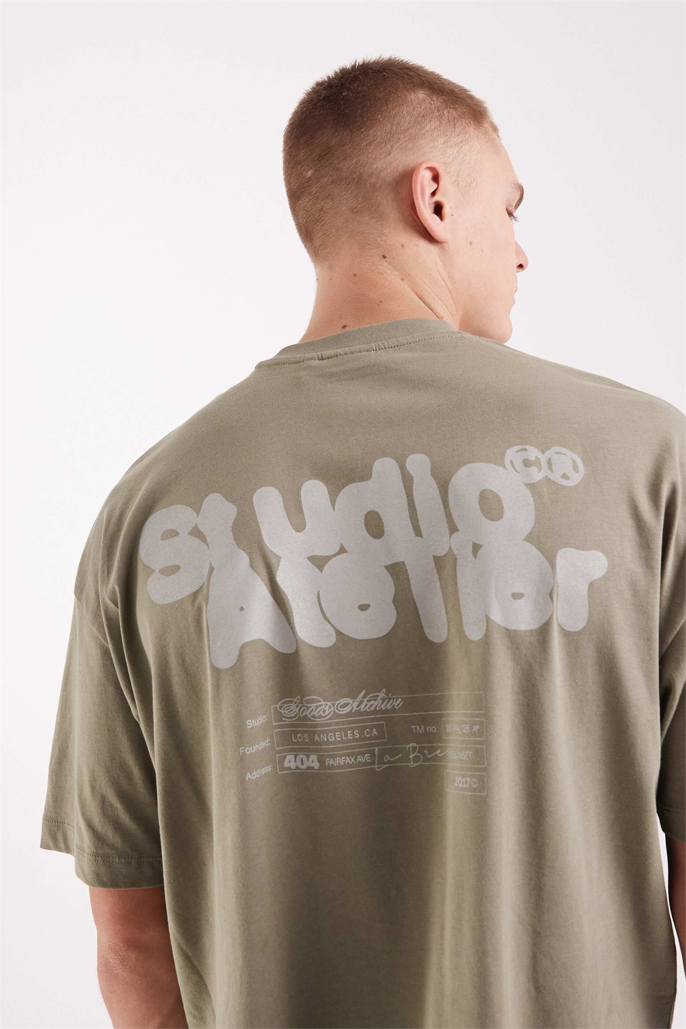Объёмная футболка свободного кроя с принтом в виде текста в пузырьках