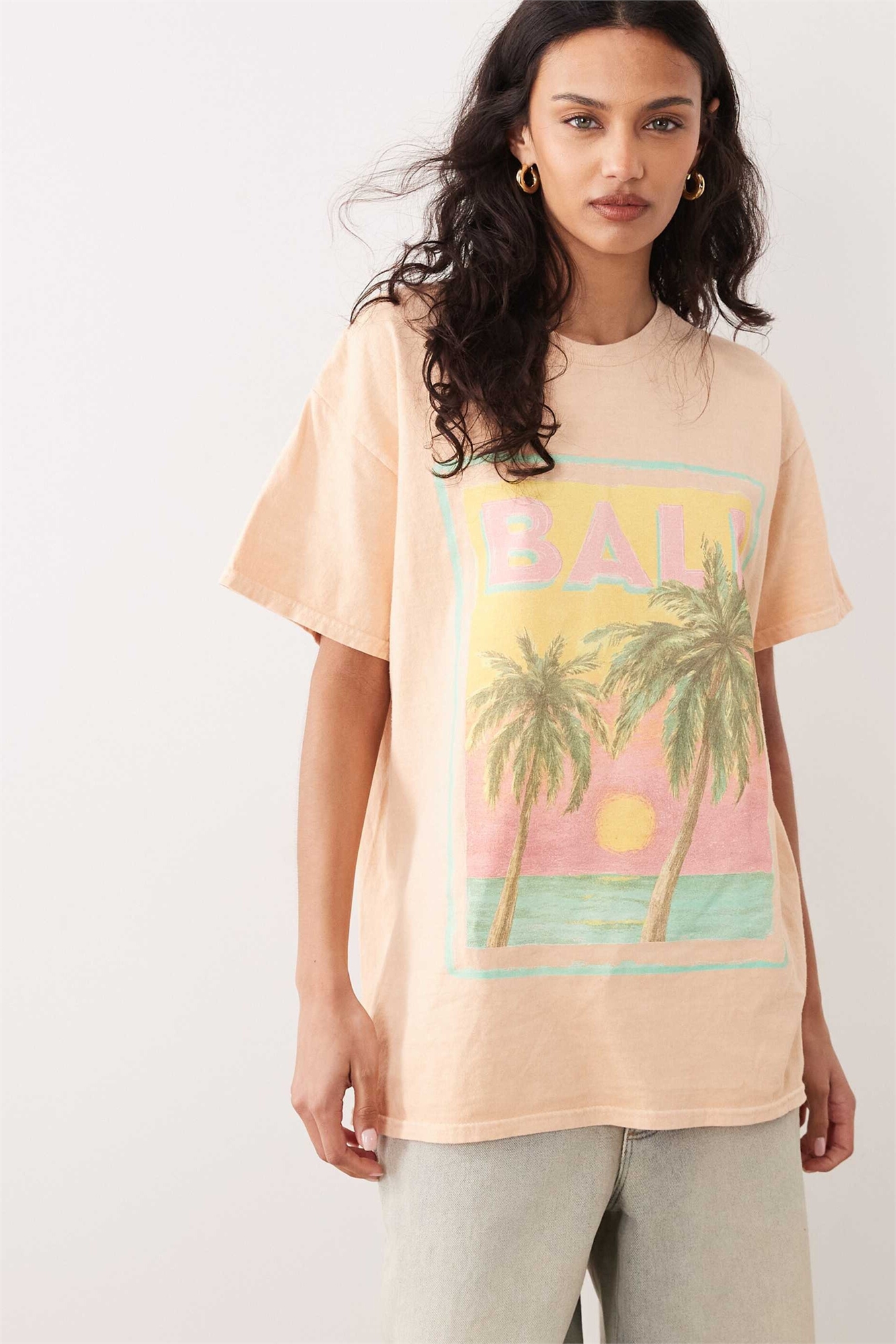 Футболка свободного кроя с принтом «Пляж на Бали»