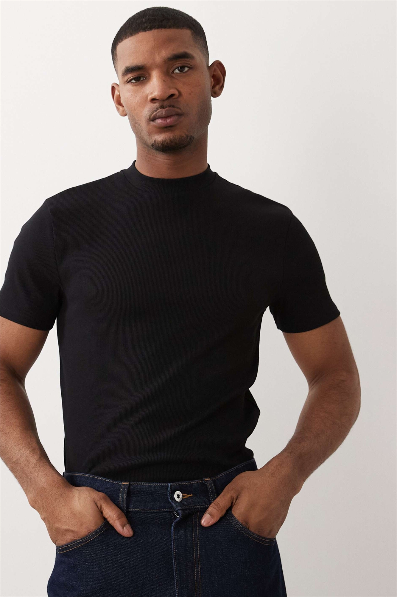 Приталенная футболка с высоким воротником