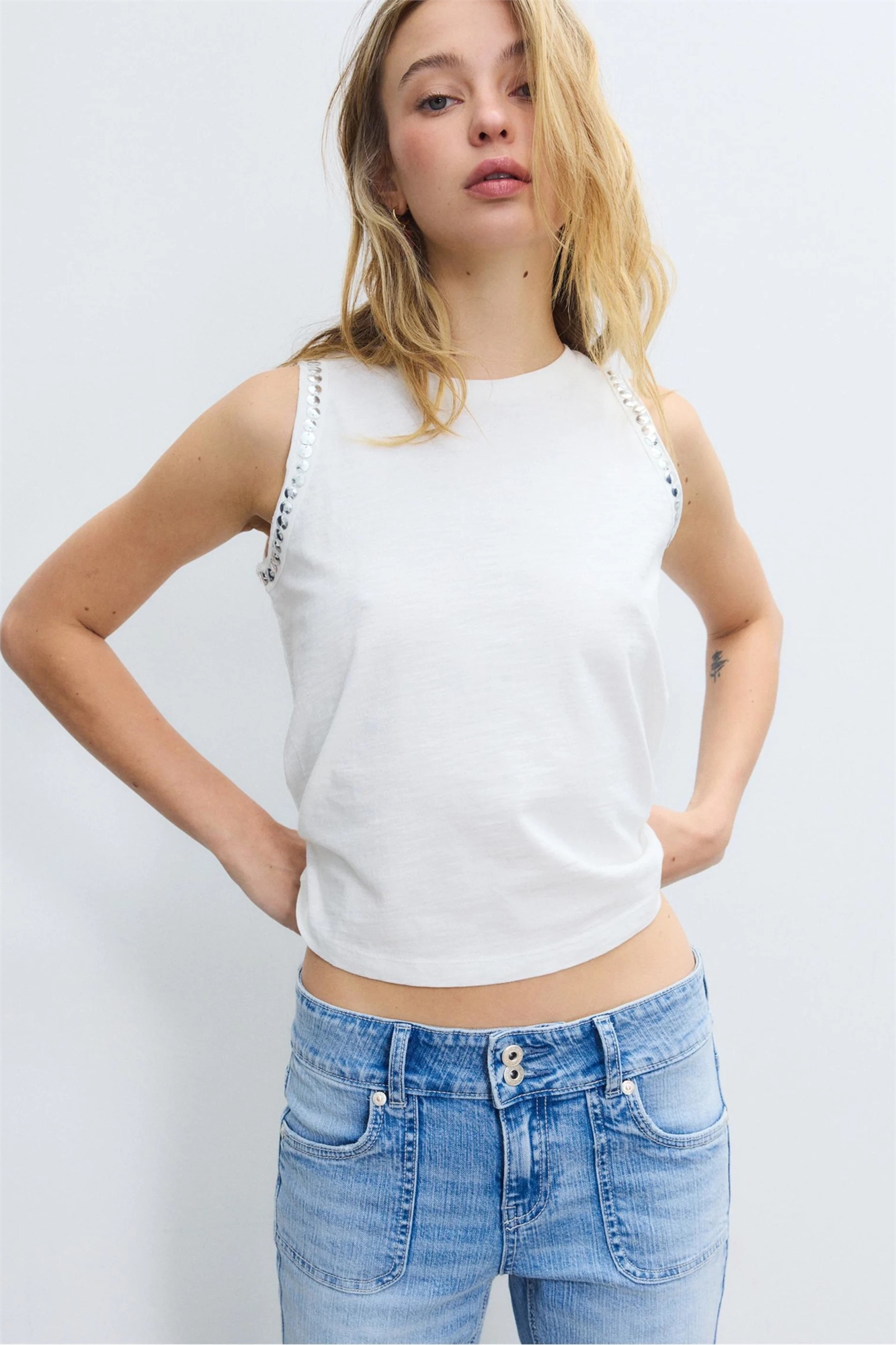 Футболка без рукавов с вышивкой из заклепок