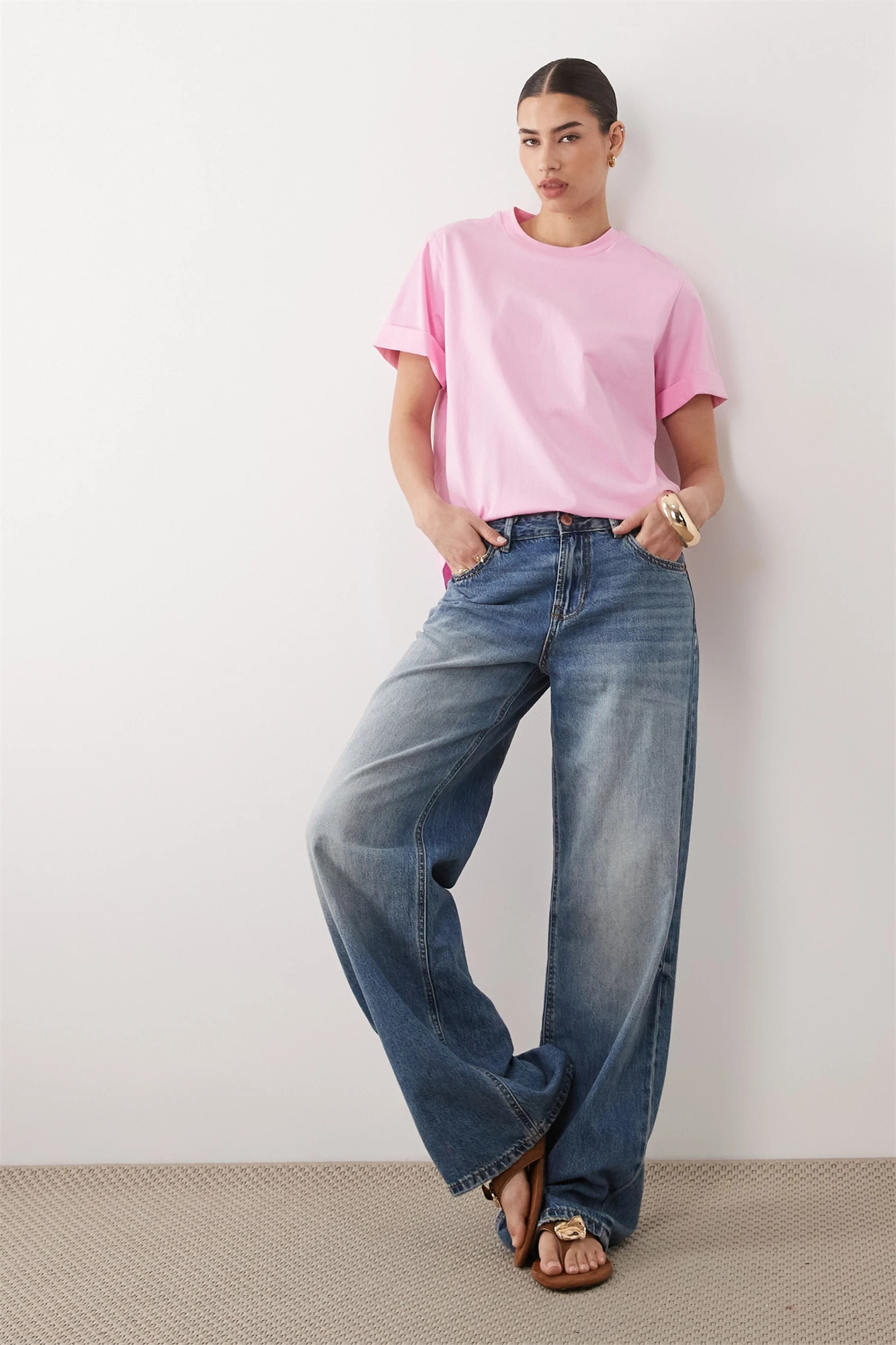 Футболка свободного кроя с закатанными рукавами