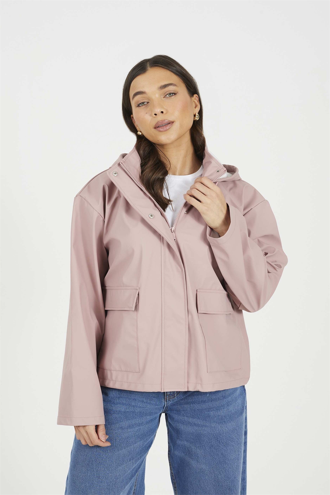 Короткий прорезиненный плащ с капюшоном