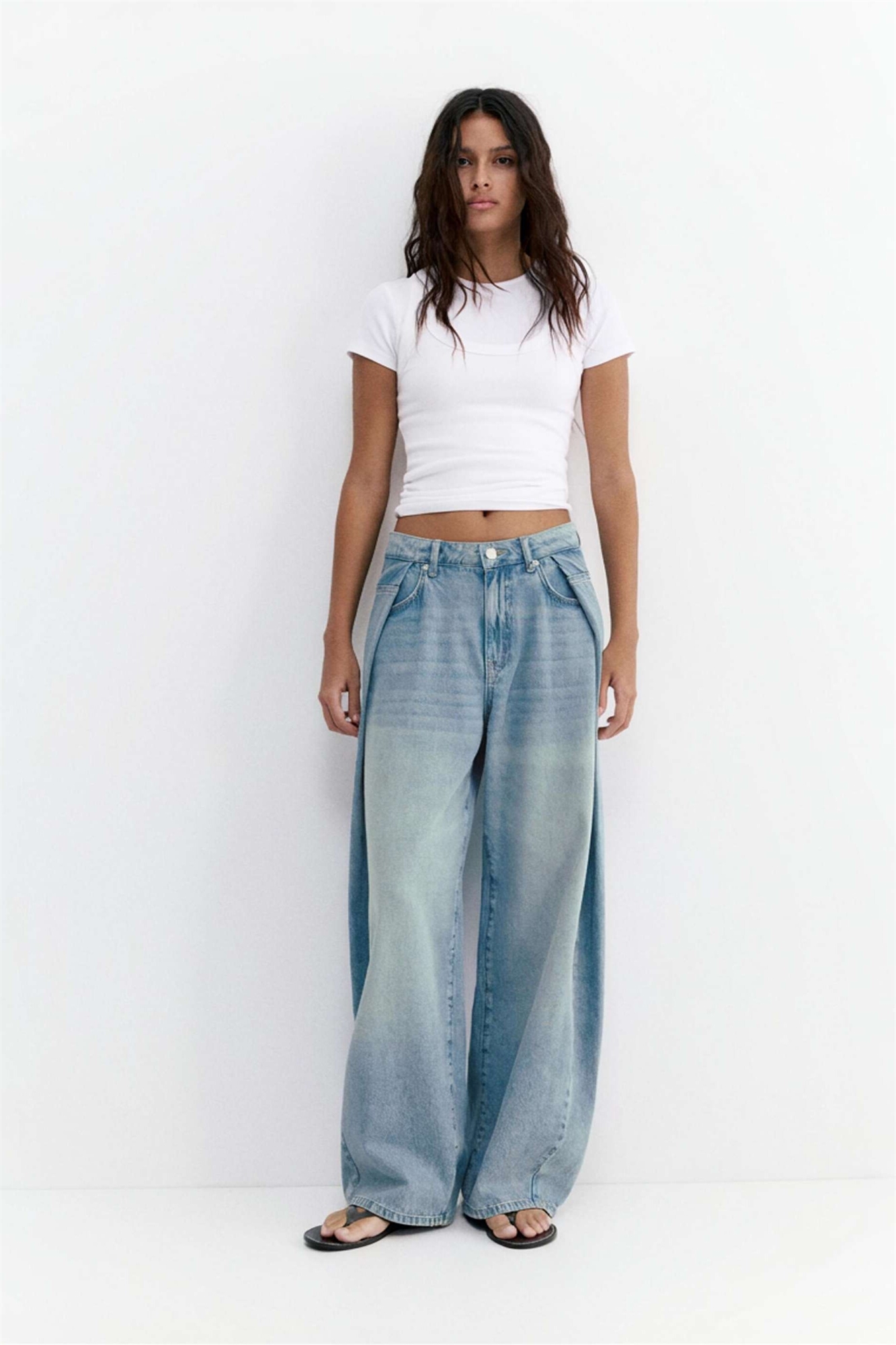 Джинсы свободного кроя с плиссированным эффектом «баллон»